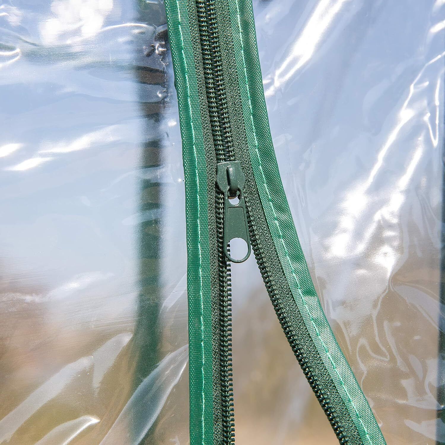 Clear PVC cover with zipped opening (can be rolled up and tied for access) provides the needed protection, as well as allowing enough light through to your plants housed inside.