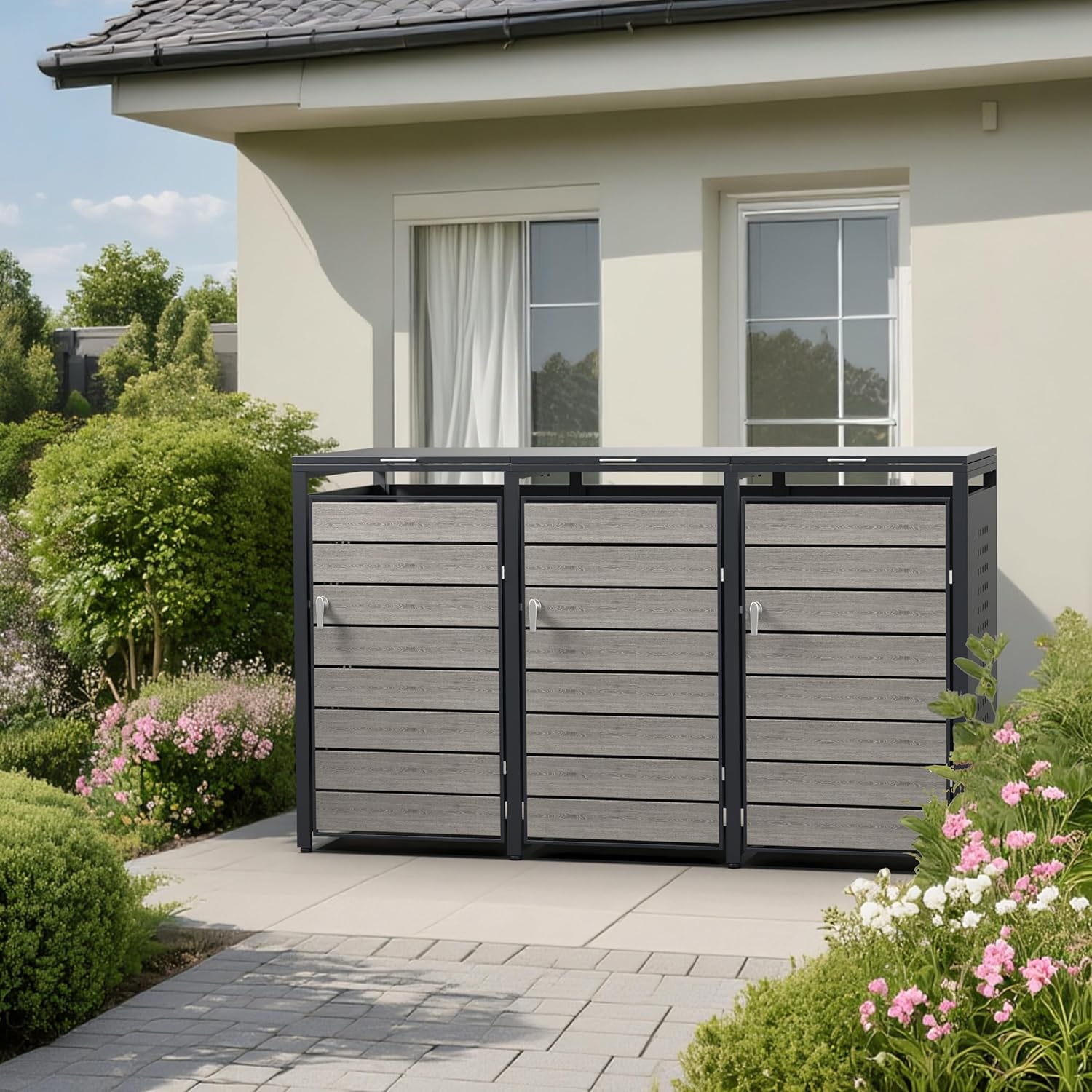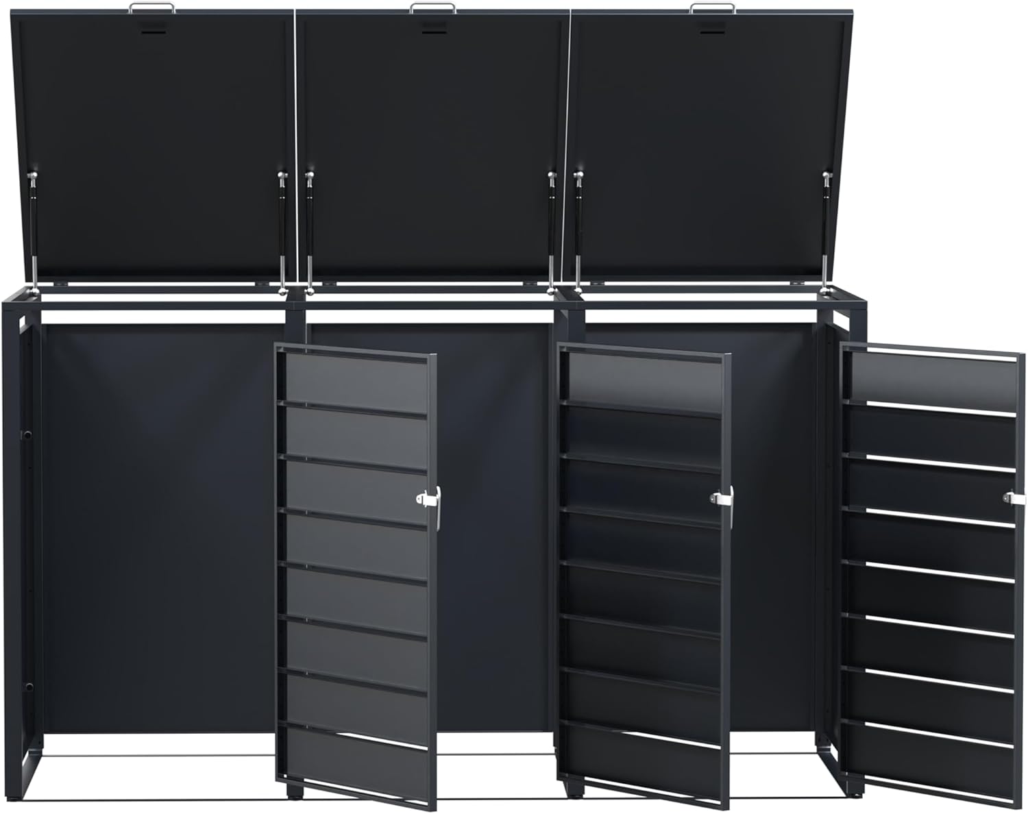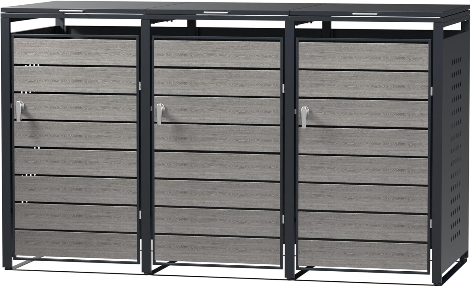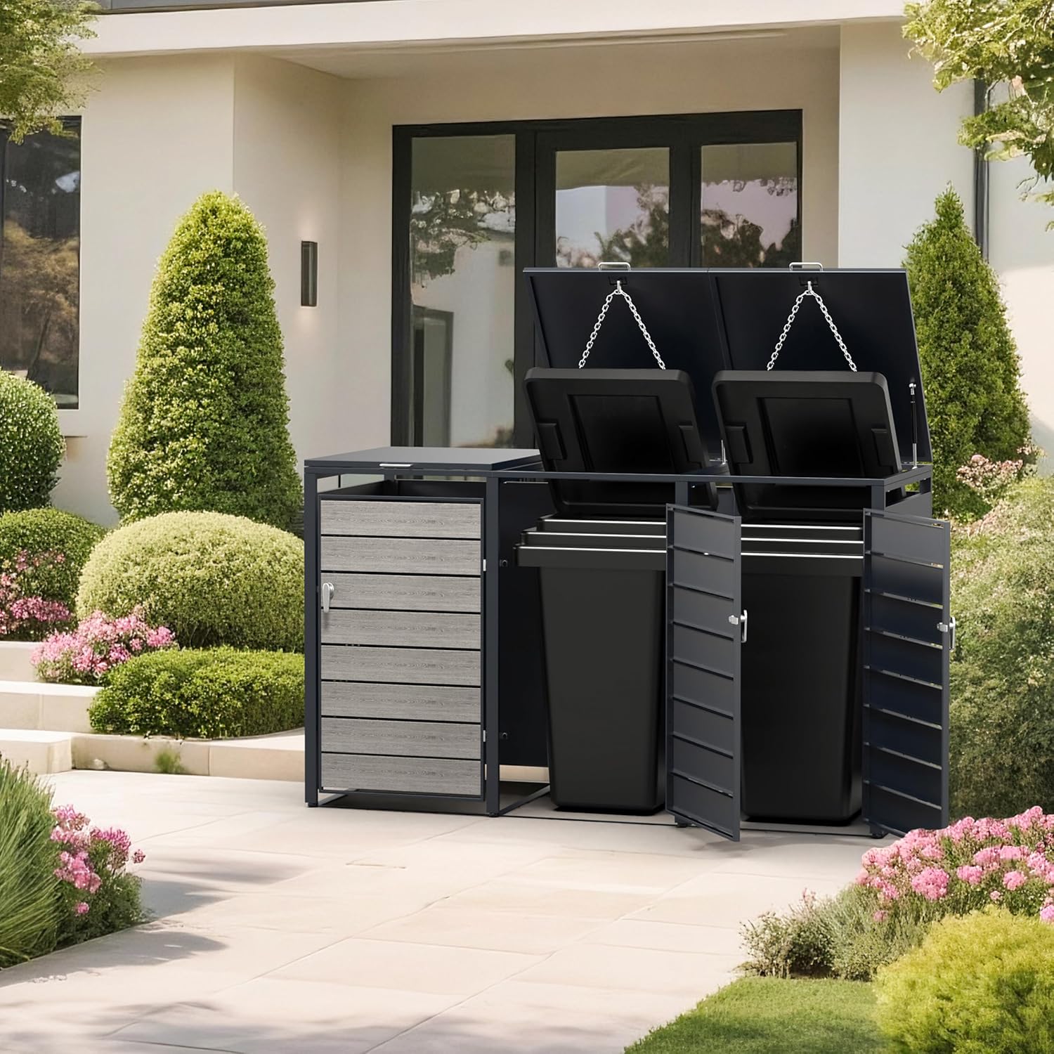 DURABLE & WEATHERPROOF: Made from galvanized, powder-coated steel for superior strength, protecting bins from harsh weather while keeping your outdoor space clean and organized.
