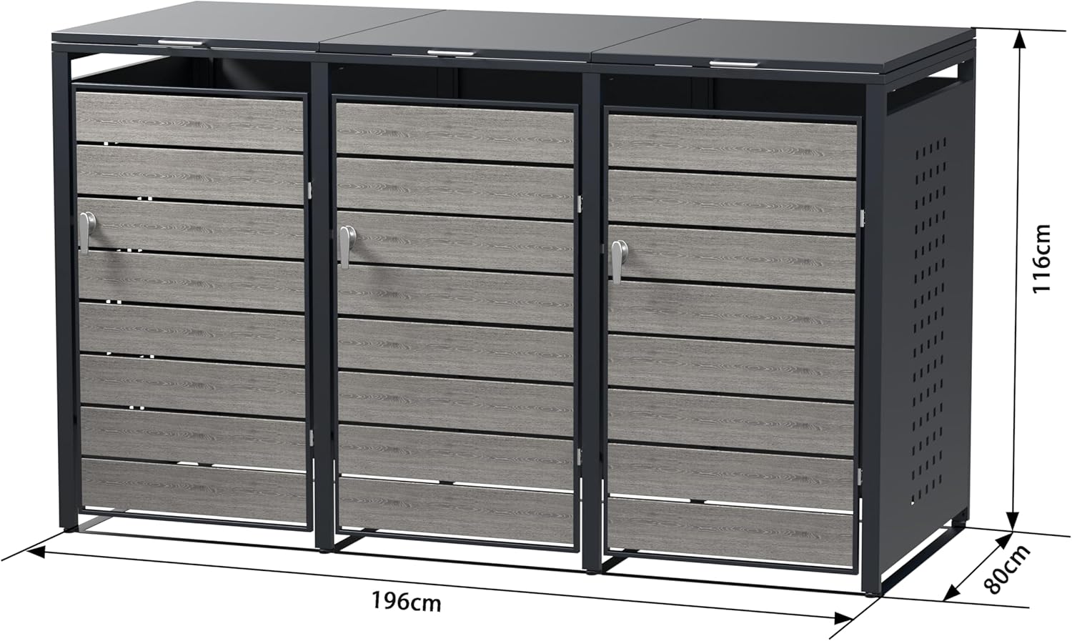 Modern Wheelie Bin Storage - Triple Bin - Wood Grain