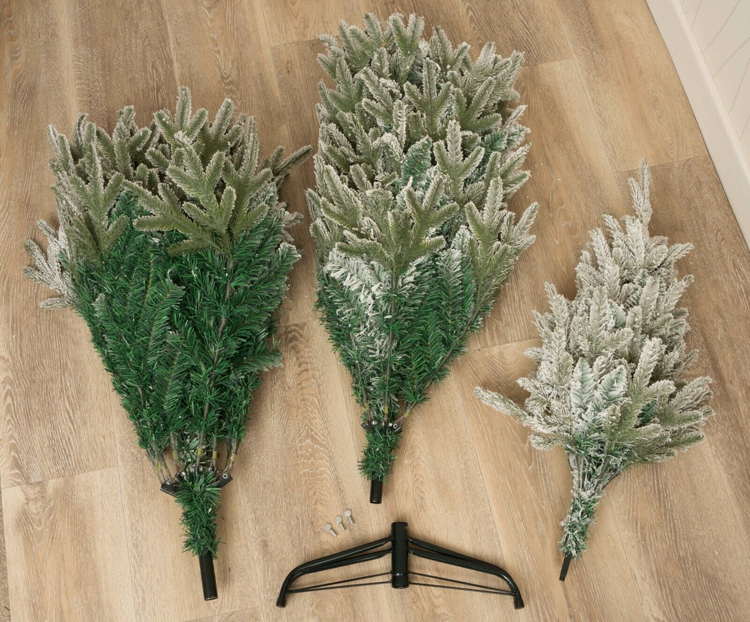 Elegant Artificial Christmas tree covered in white snow dust with various types of tips.