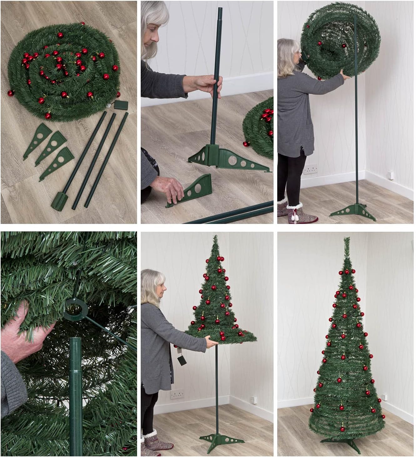 Unlit Pop up Christmas Tree with Red Baubles - 6ft/180cm