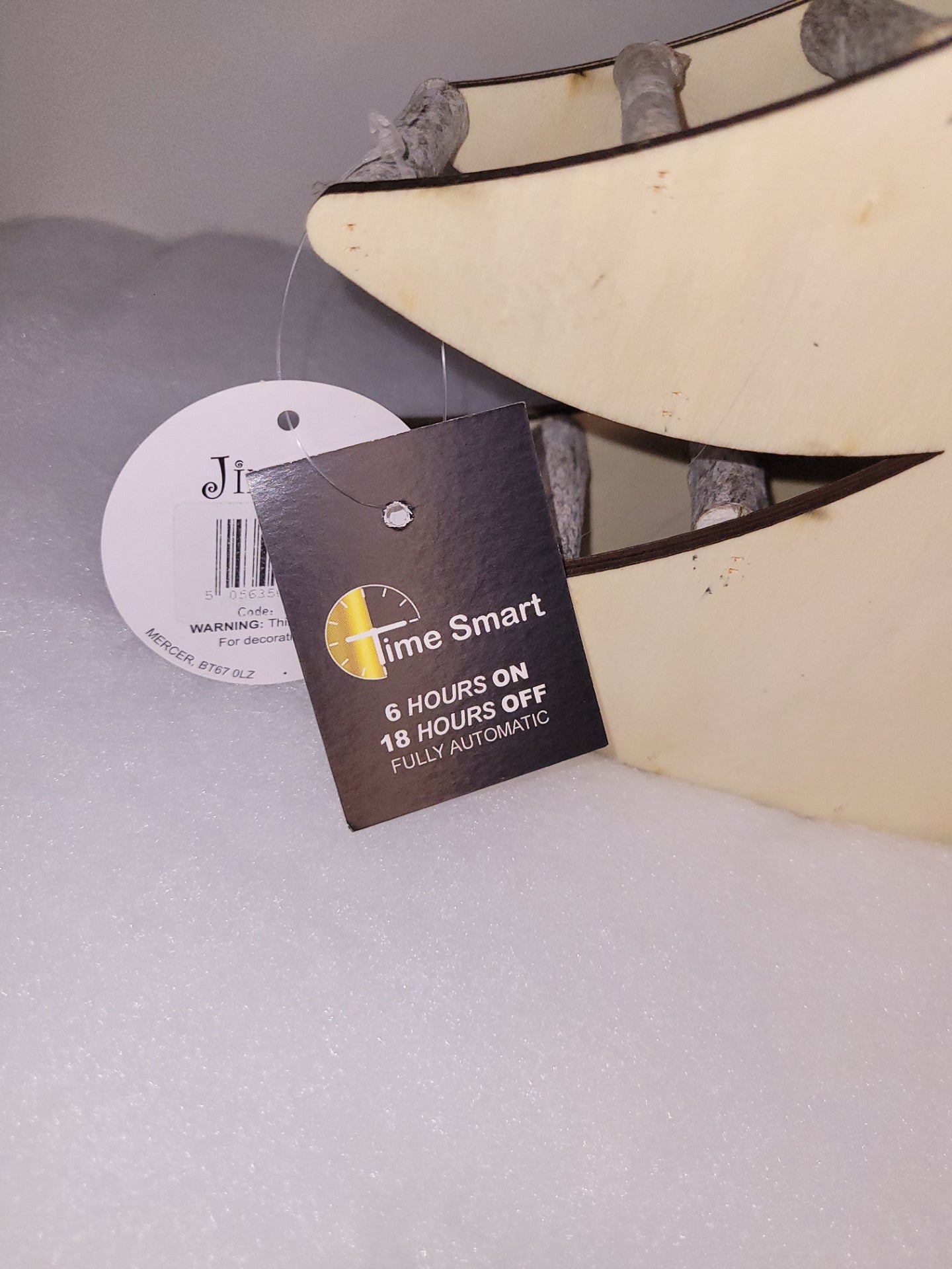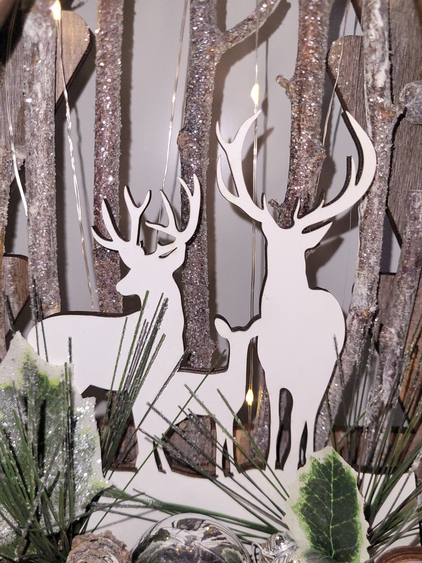 Wood Effect Christmas Tree 38cm with Deer Scene and Warm White LEDs