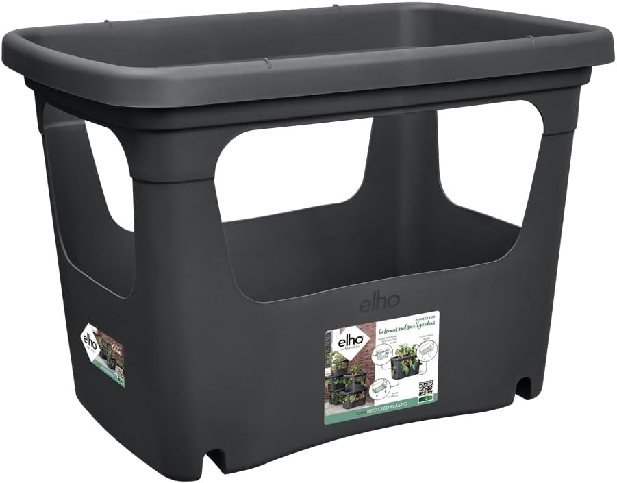 The green basics stack & grow large: a great new way to grow your own vegetables, herbs, and fruit. These containers can be stacked on top of each other to create the desired height. Perfect if you have a small garden or balcony! Your plants can grow optimally as they’ll get enough air and light, and excess water can easily drain away. You can trust that our love for nature is reflected in how this pot was produced: it’s made from recycled plastic, produced with wind energy from our own windmill, and it’s also fully recyclable.