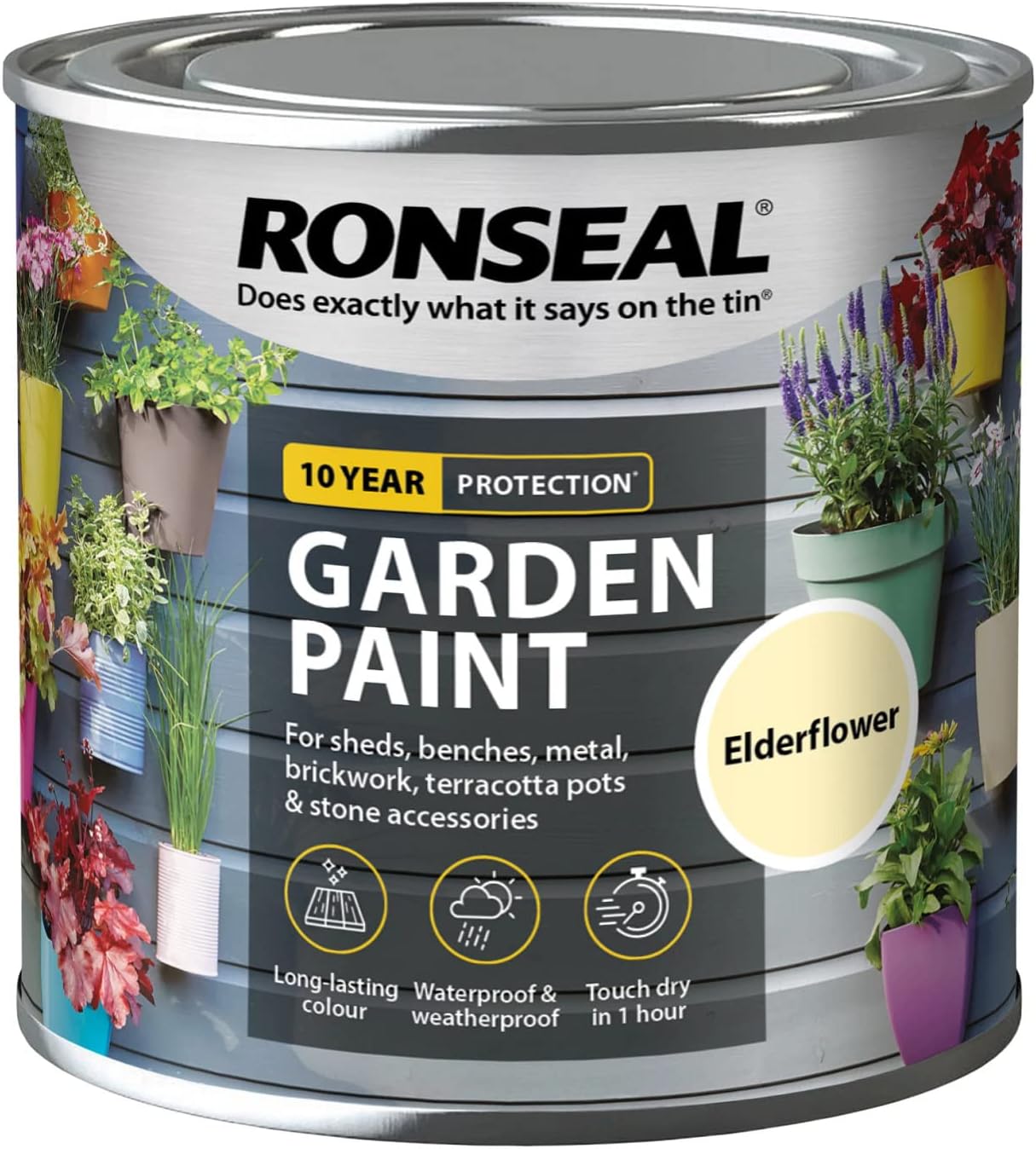 Add colour to almost anything in your garden with Ronseal Garden Paint. It’s versatile and can be used to paint wood, brick, terracotta and metal. The paint both looks good and will waterproof and protect your wood too. Now with brand new packaging. Whether it's in our classic packaging or our brand new packaging, it's still the same great product.