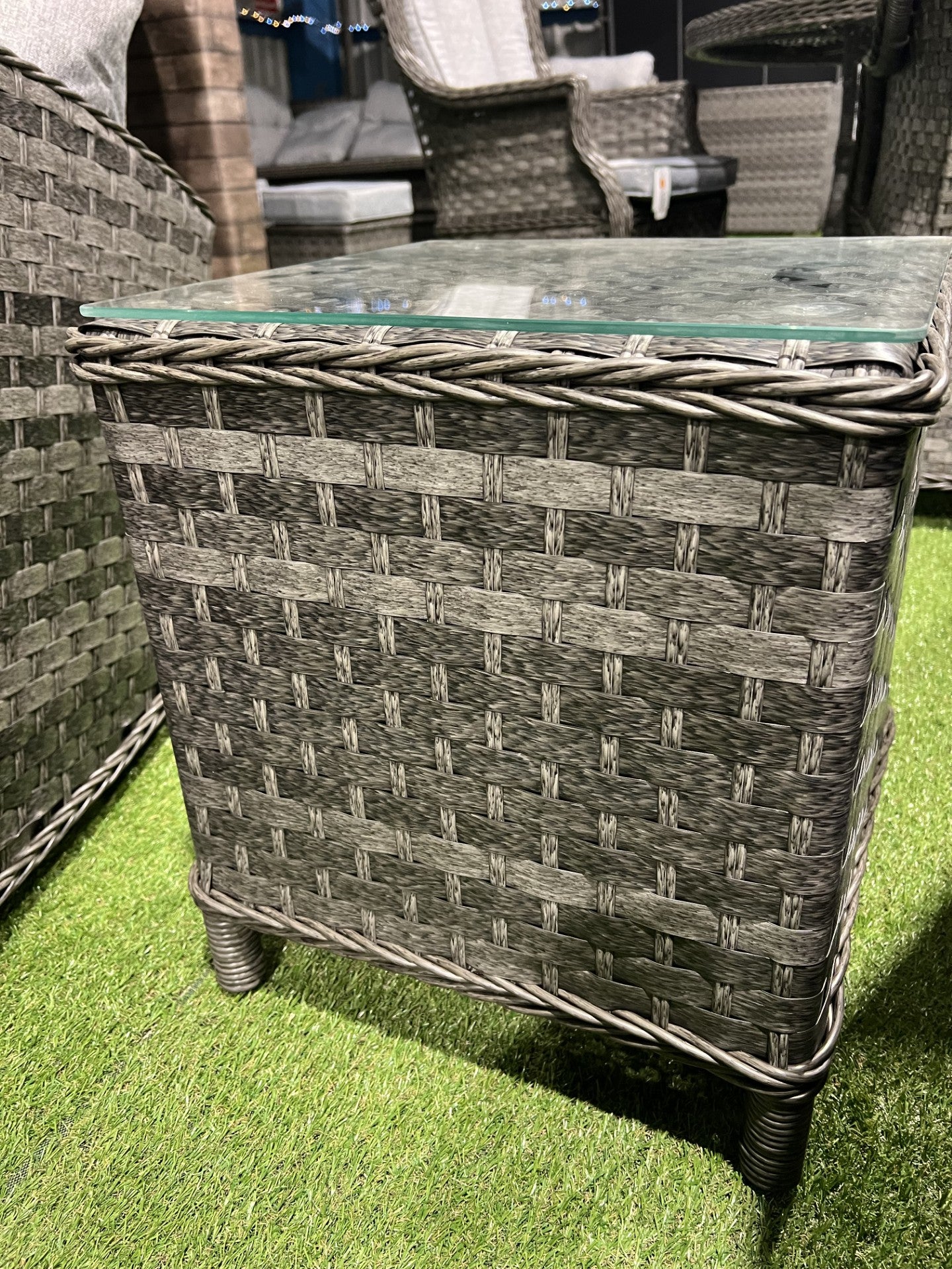 Indulge in a summer of relaxation with Amalfi Relaxer Bistro Set, part of Mercer's garden furniture reclining collection. Experience ultimate comfort with two cosy sofa chairs, perfect for enjoying quality time and refreshments. The classic two-tone grey weave has been a top choice among customers for years. The tempered glass table top guarantees protection from spills and long-lasting durability.