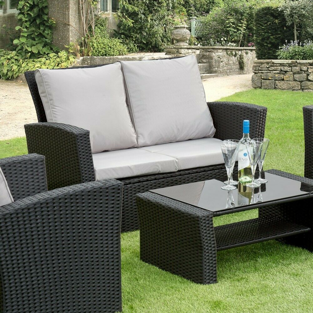 GSD Rattan 4 Piece Lounge Set - Black with Grey Cushions