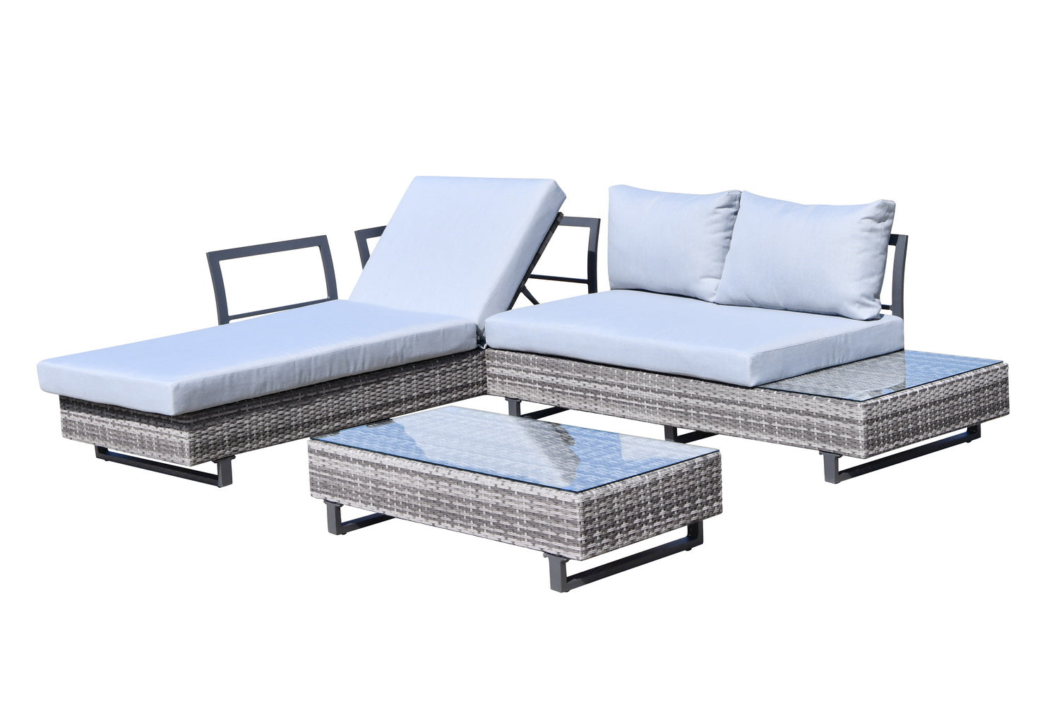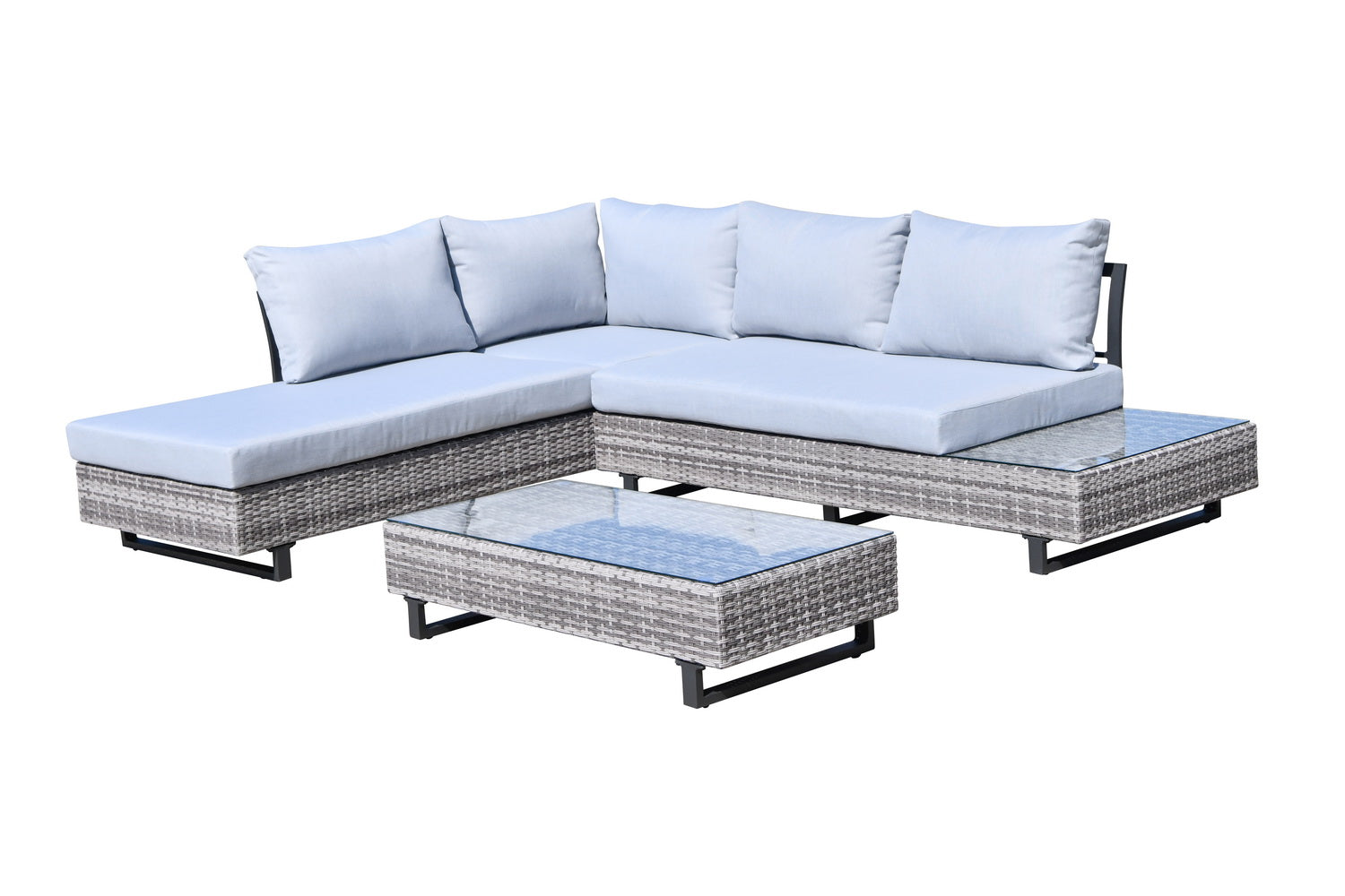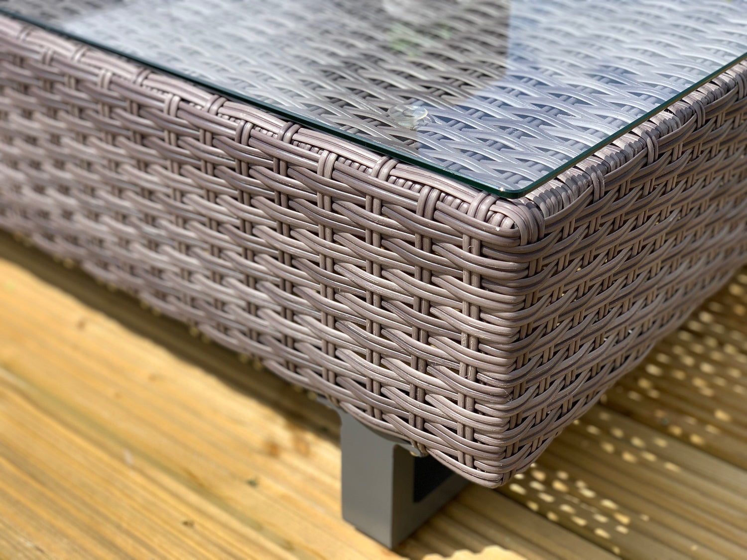 This set features a textured grey resin weave that has been carefully woven over its aluminium frame.