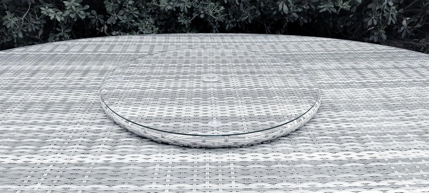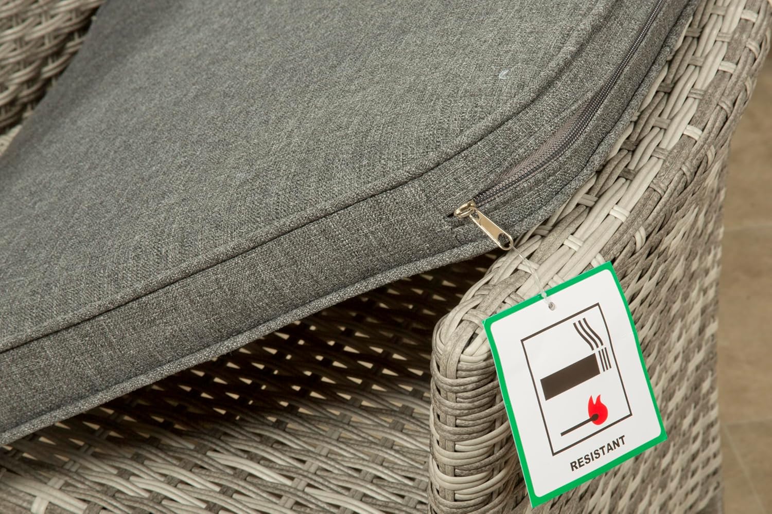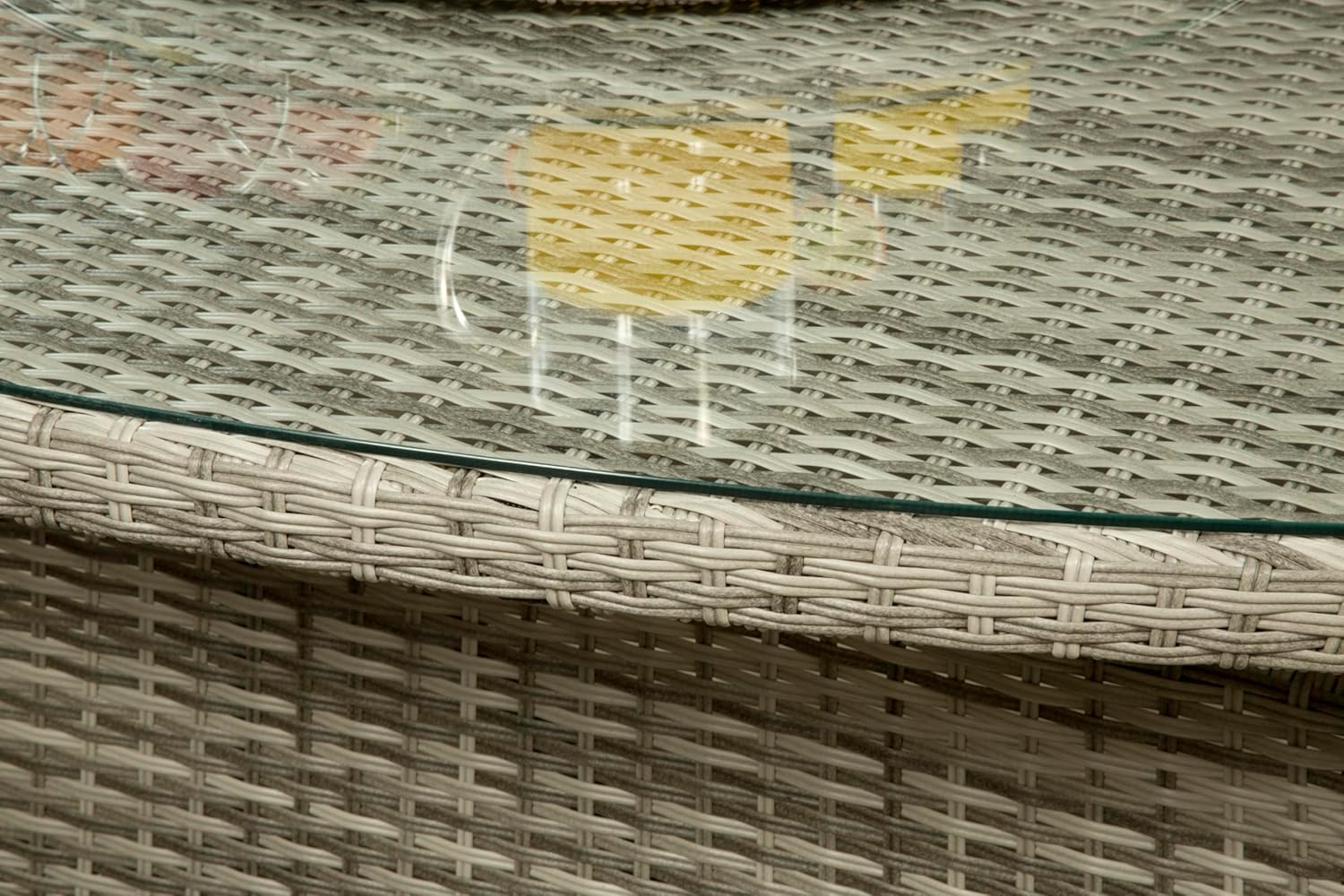 The natural look half round weave is made from an all-weather poly rattan in contemporary mixed grey or natural colours & UV treated against colour fading.