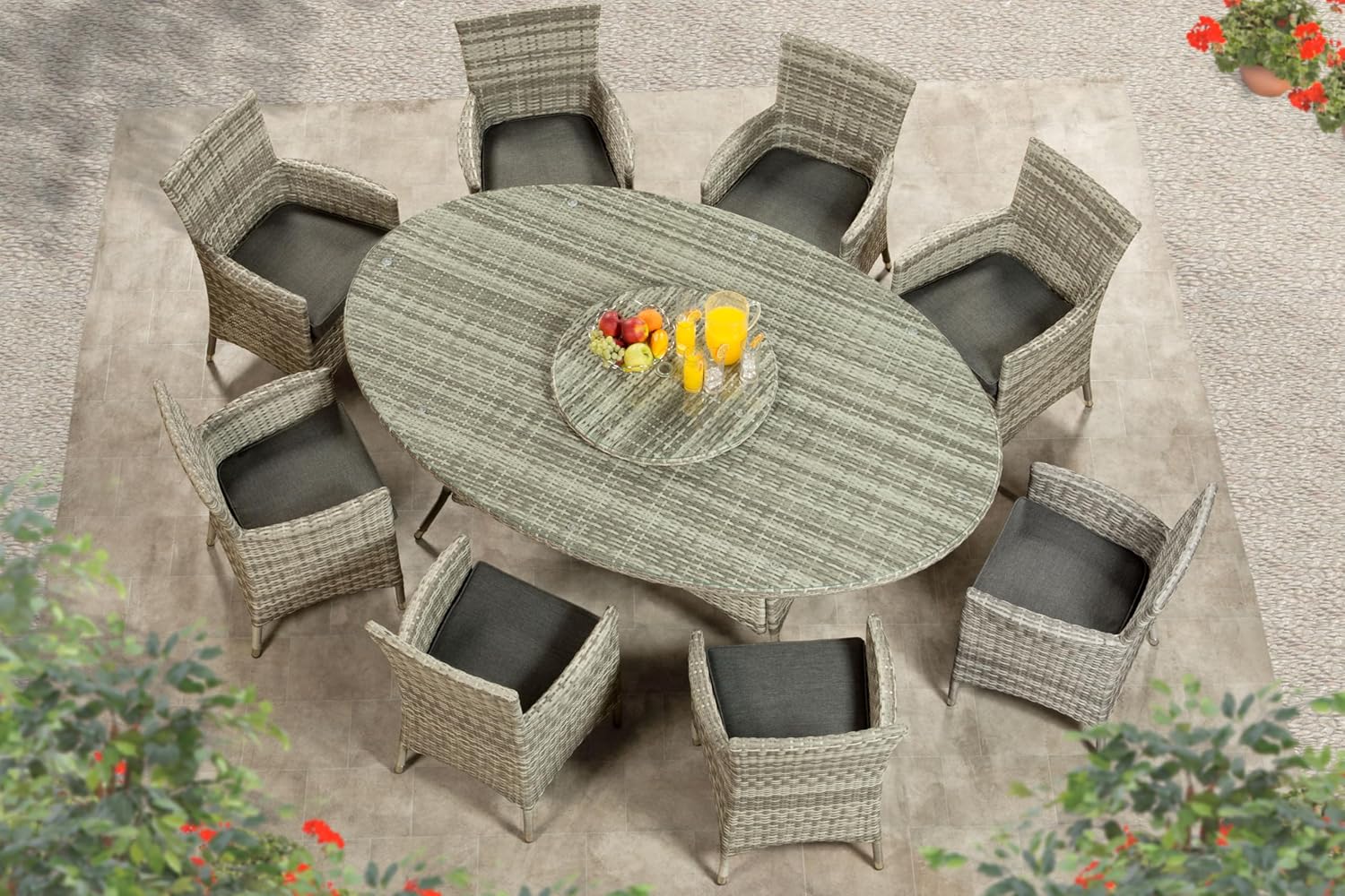Sarasota 8 Seat Oval Dining Set in Grey is backordered and will ship as soon as it is back in stock.