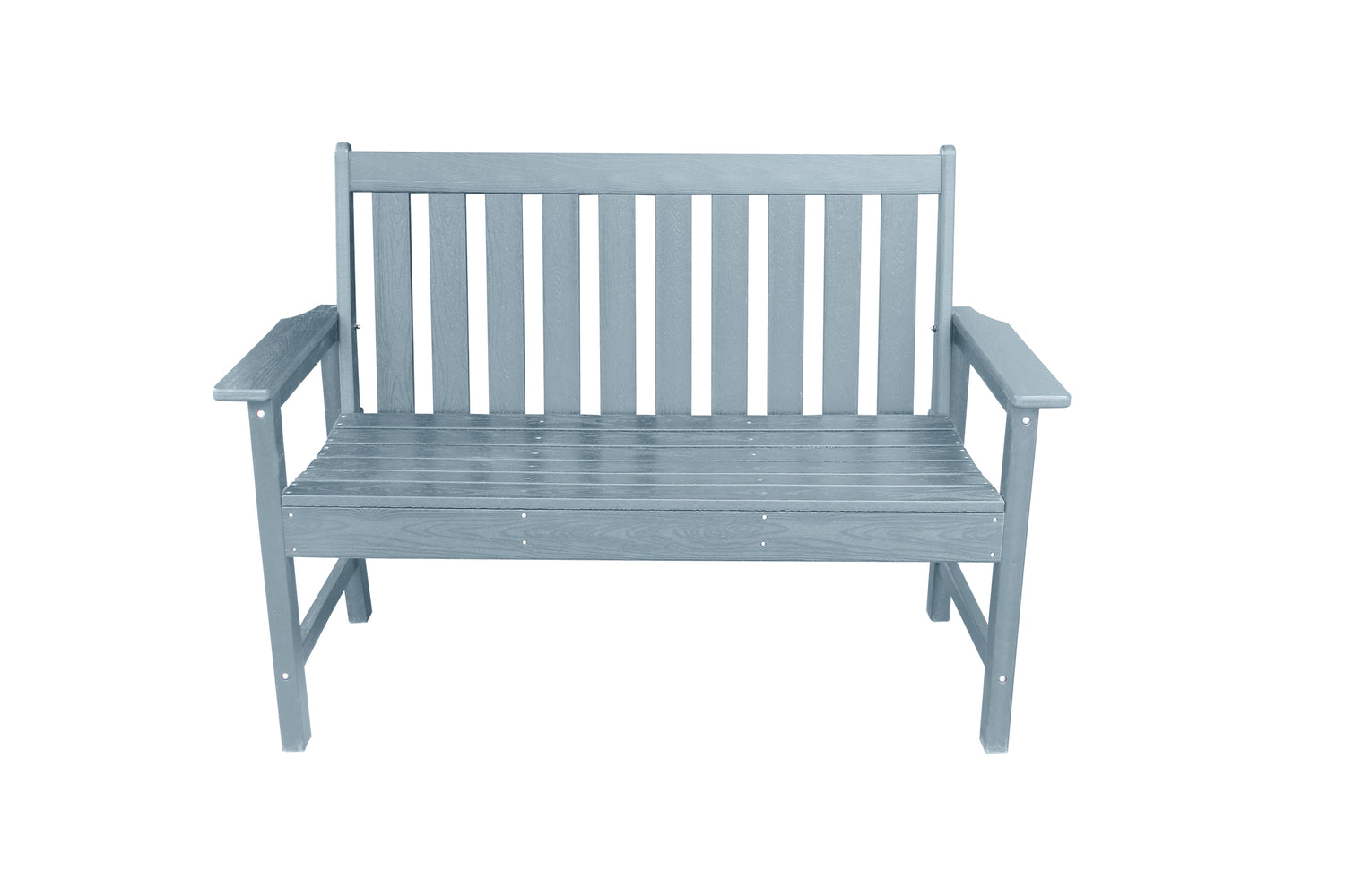 WATERPROOF HDPE: Crack, splinter, and fade-resistant, your Vienna 2 Seat bench is built to last. The outdoor chair is finished with a wood grain effect, so you can enjoy the aesthetic charm without all the upkeep.