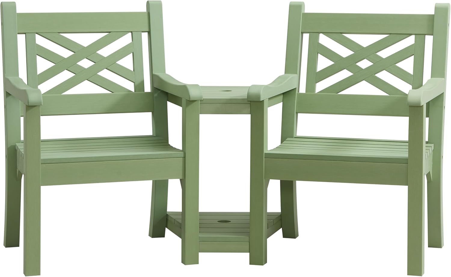 Winawood Speyside Polymer Wood Effect Love Seat - Duck Egg Green