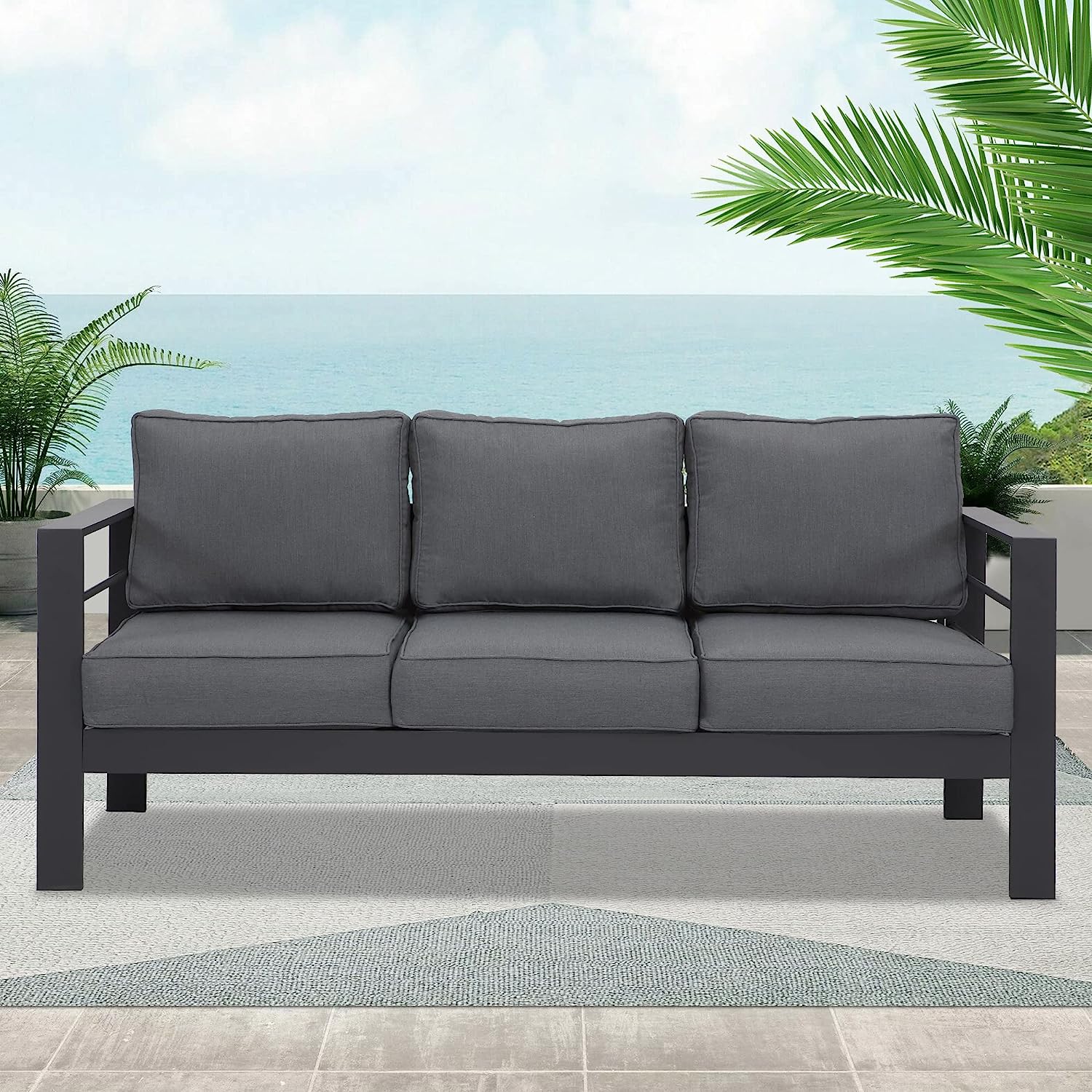 EASY MAINTENANCE - Rustproof aluminium sofa is designed for the outdoors and does not require special maintenance. Zippered cushion covers can be quick disassembly for machine washing