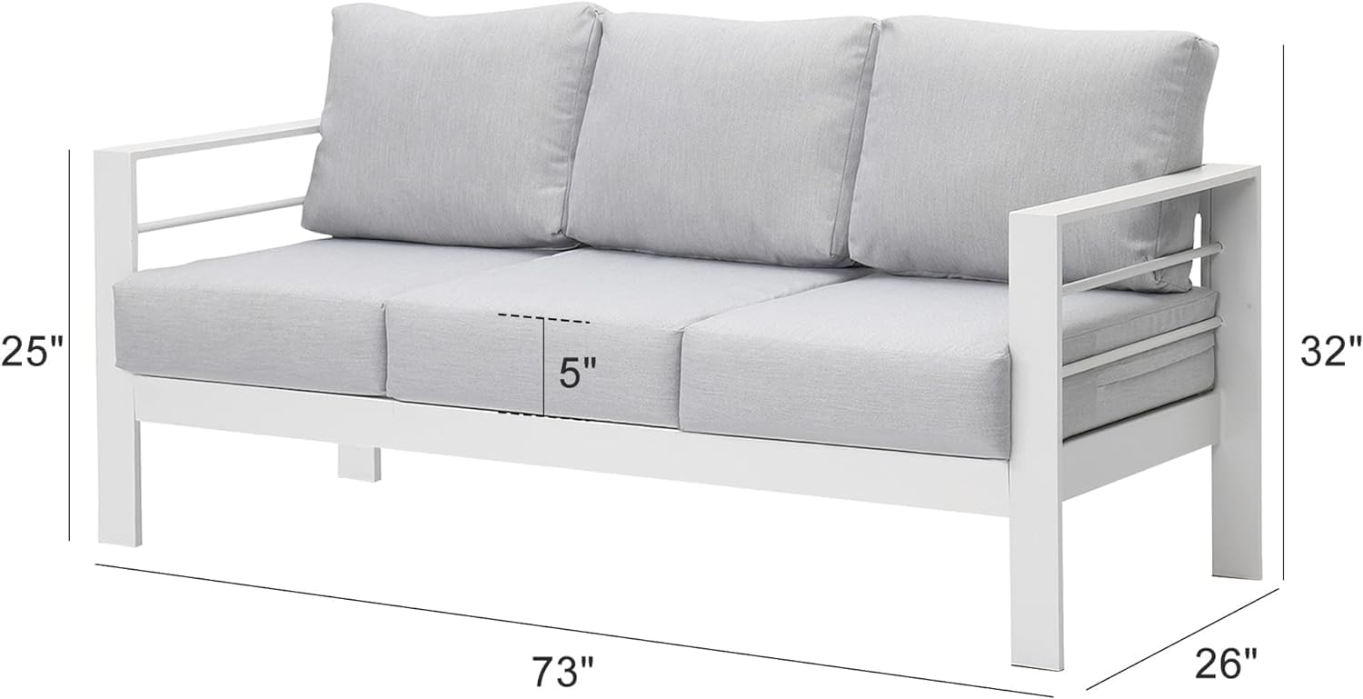 EASY MAINTENANCE - Rustproof aluminium sofa is designed for the outdoors and does not require special maintenance. Zippered cushion covers can be quick disassembly for machine washing