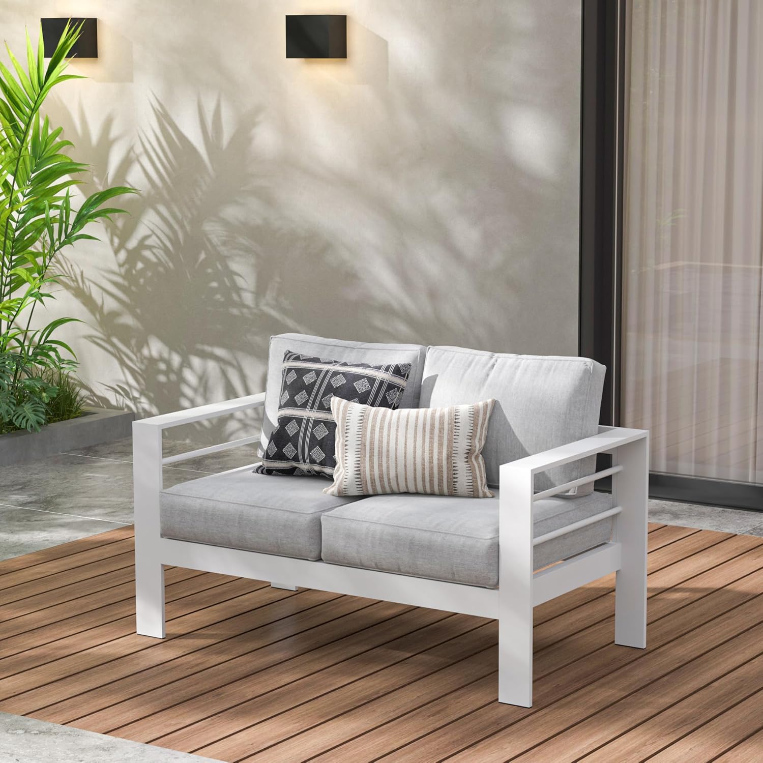 CONTEMPORARY DESIGN - The ergonomic wide armrests and seat backs ensure you will enjoy all day long. Modern design makes it suitable for balcony, courtyard, deck, and any outdoor living area