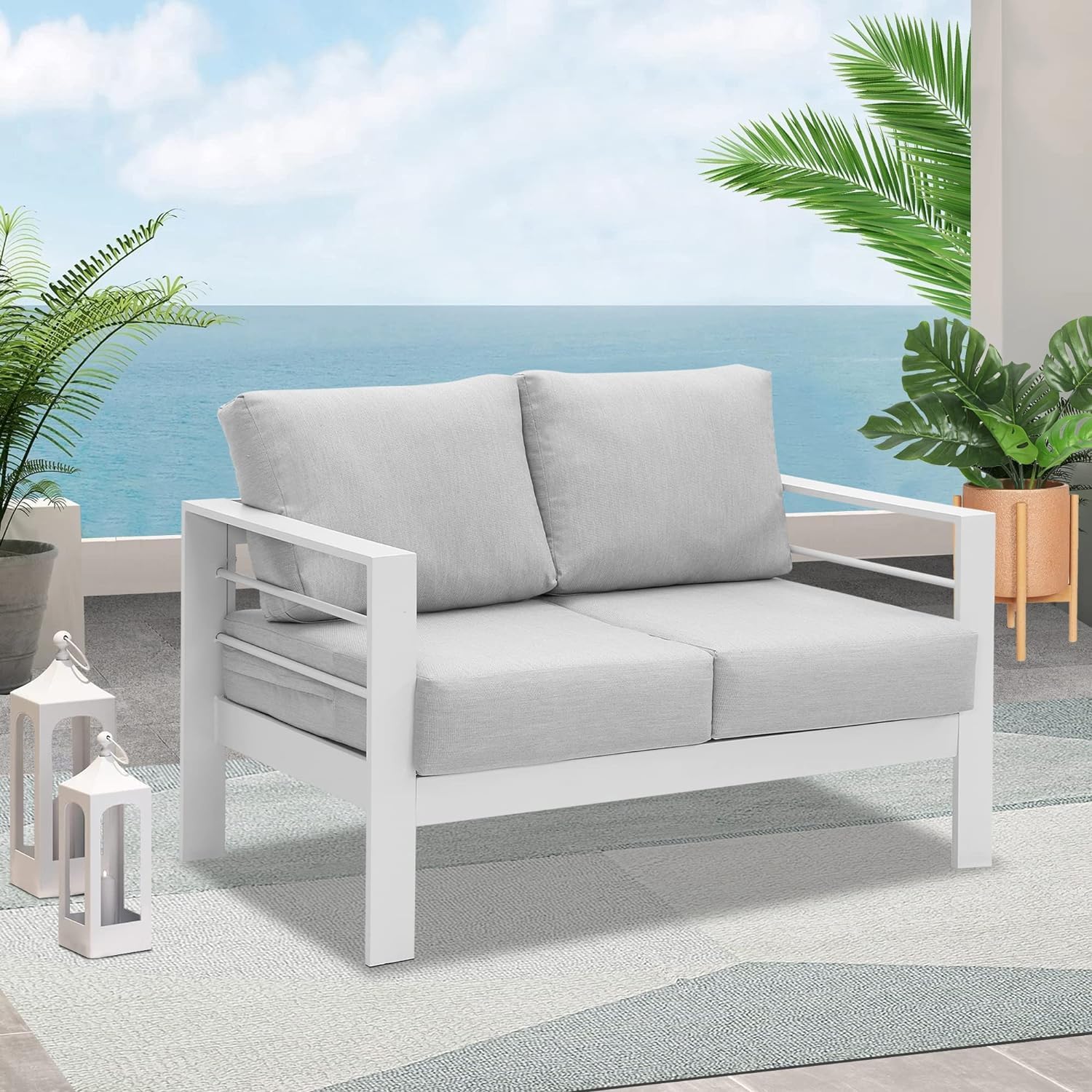 HIGH-GRADE MATERIAL - This aluminium furniture sofa has superior quality, leading manufacturing processes. The surface is anti-rust processed and thus beautiful and corrosion-resistant.