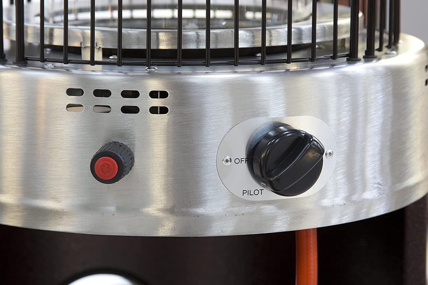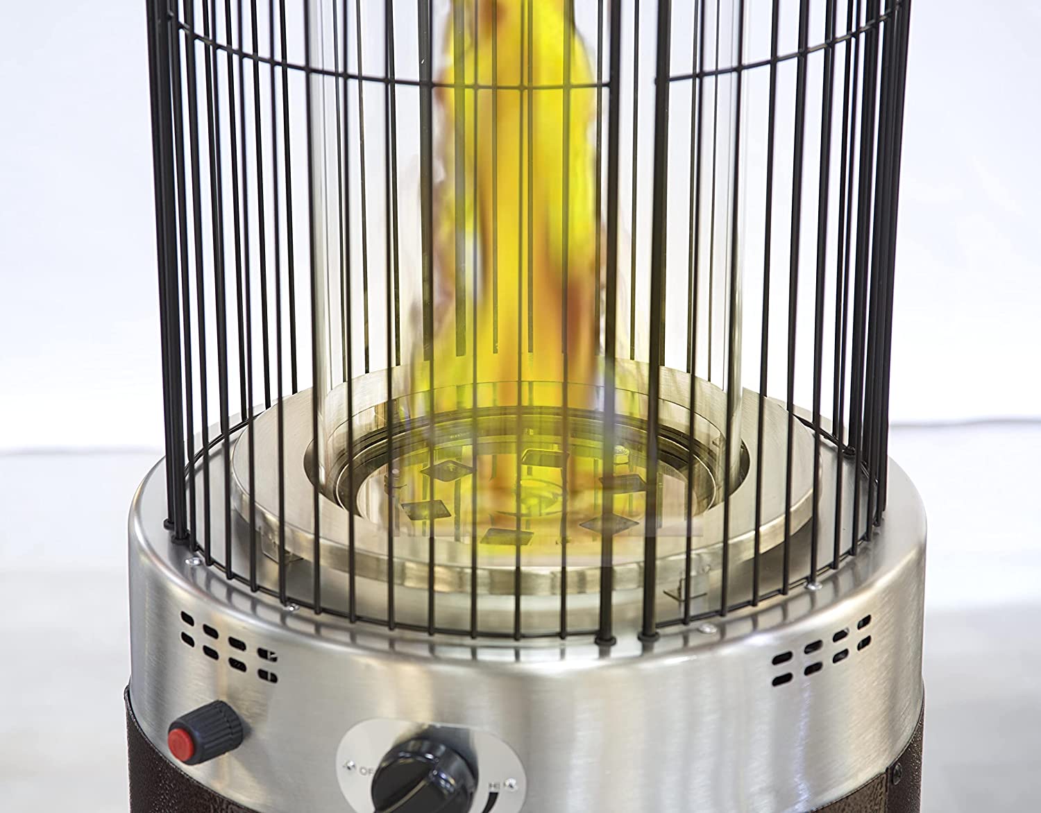 Encased in a tempered-glass tube, watch the spiral flame dance up, as up to 40,000 BTUs of heat to keep you warm.