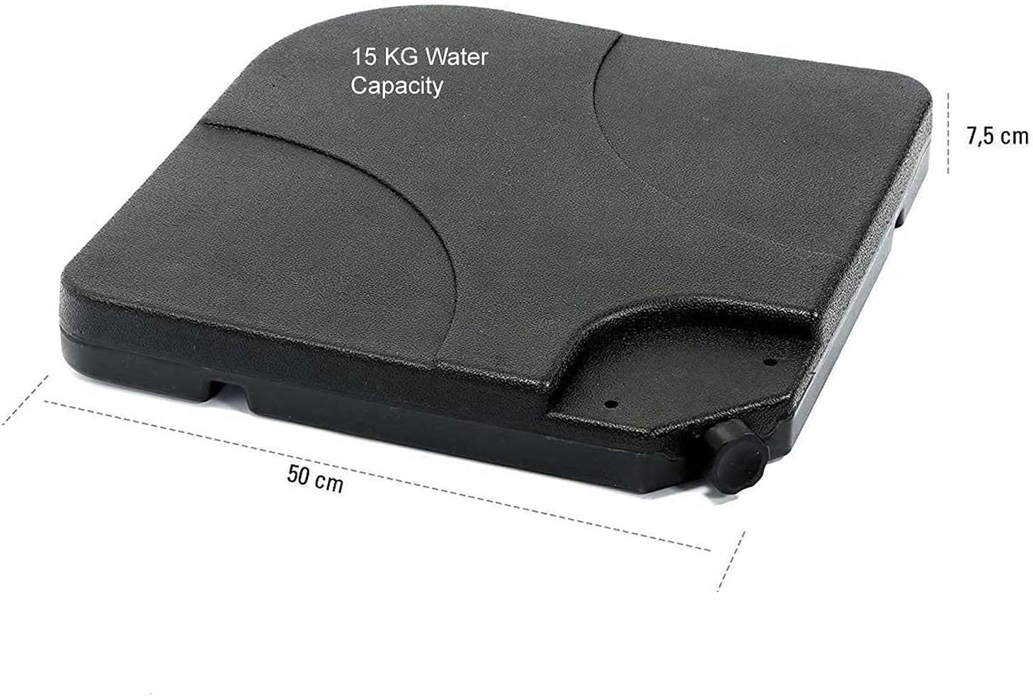 Modern design with smart rounded edges and quality overall finish - made from waterproof and hardwearing polypropylene Lightweight when empty to allow for easy storage and transportation, can be easily moved into and out of place and positioned on the parasol base with the handy built-in handle.