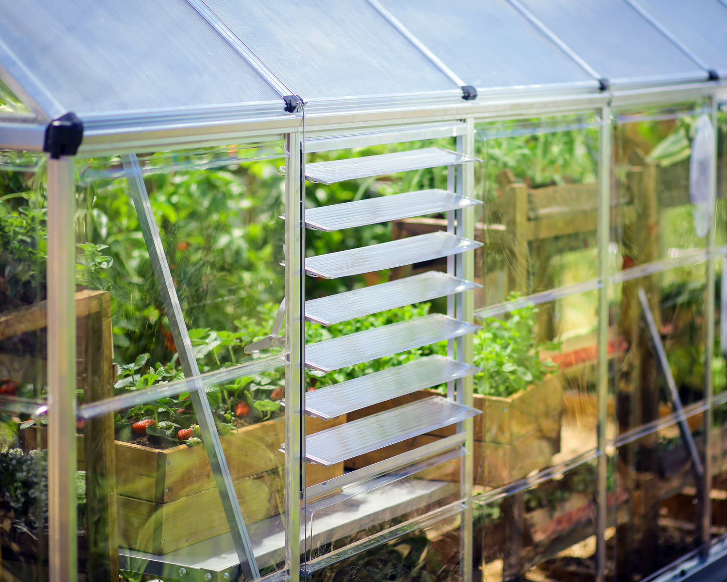 The Side Louver Window was designed to improve the air circulation and help control the temperature in all Palram – Canopia greenhouses. The shutters are controlled manually for variable airflow. When paired with the roof vent, the louver window can provide improved air circulation. Additionally the Side Louver Window can be fitted with Palram’s Automatic Louver Opener to provide the ideal airflow into the greenhouse.