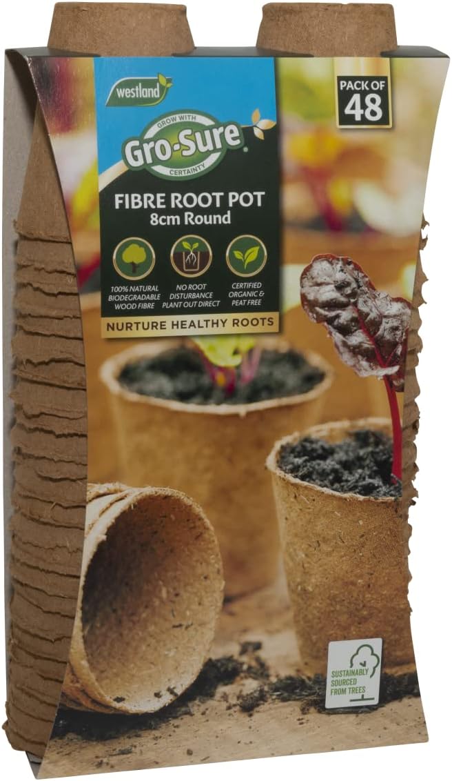 Gro-sure Fibre Pots Round 8cm 48 pack