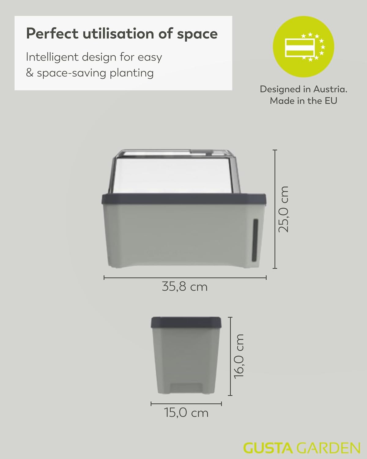 Designed in Austria: Our products are manufactured in the EU and are food-safe & durable. In addition to assembly and cultivation instructions, we also provide tips for care and harvesting, recipes and videos
