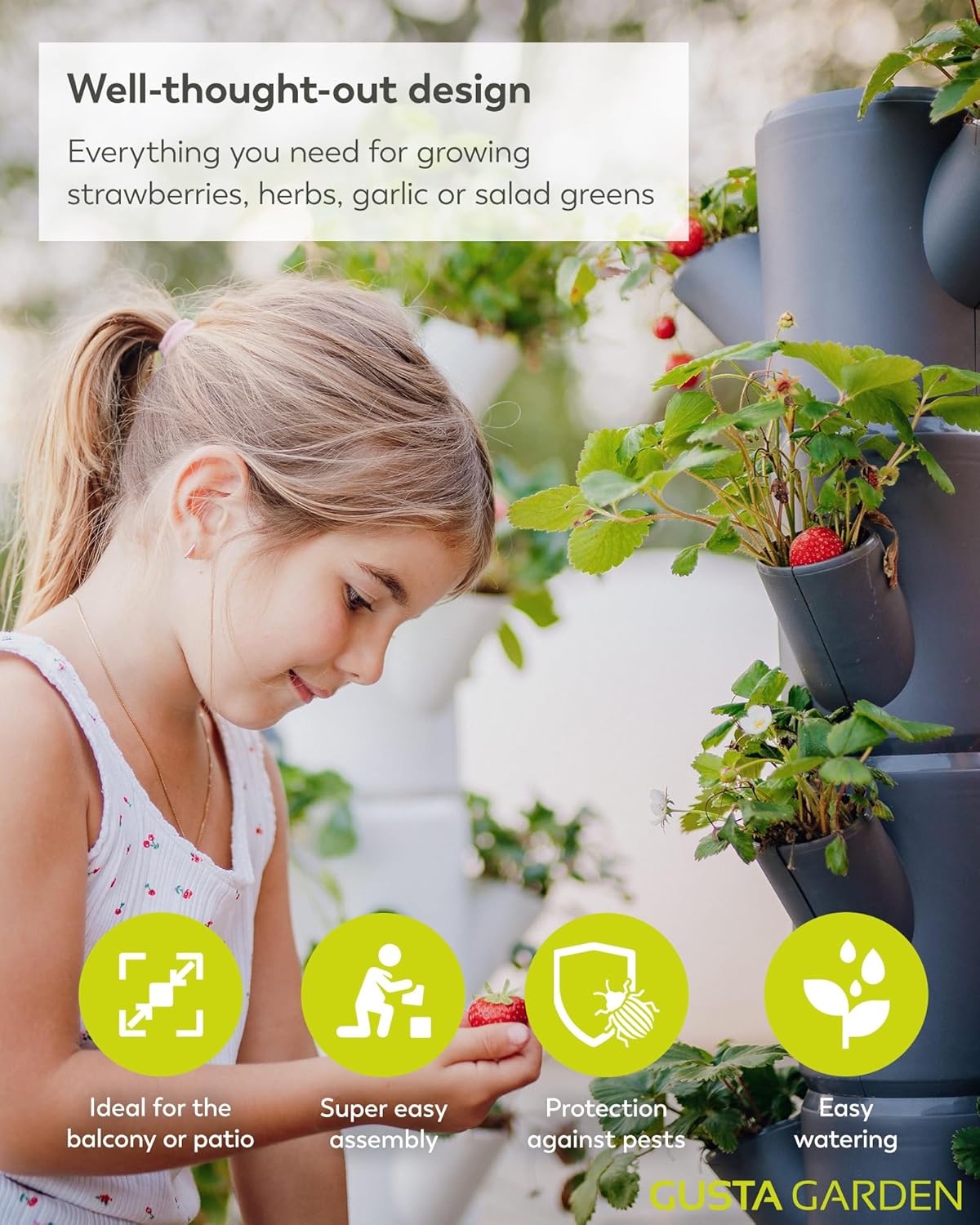 Professional Strawberry Tower: With our modular, vertical plug-in system, growing strawberries or herbs is very easy & becomes a real eye-catcher