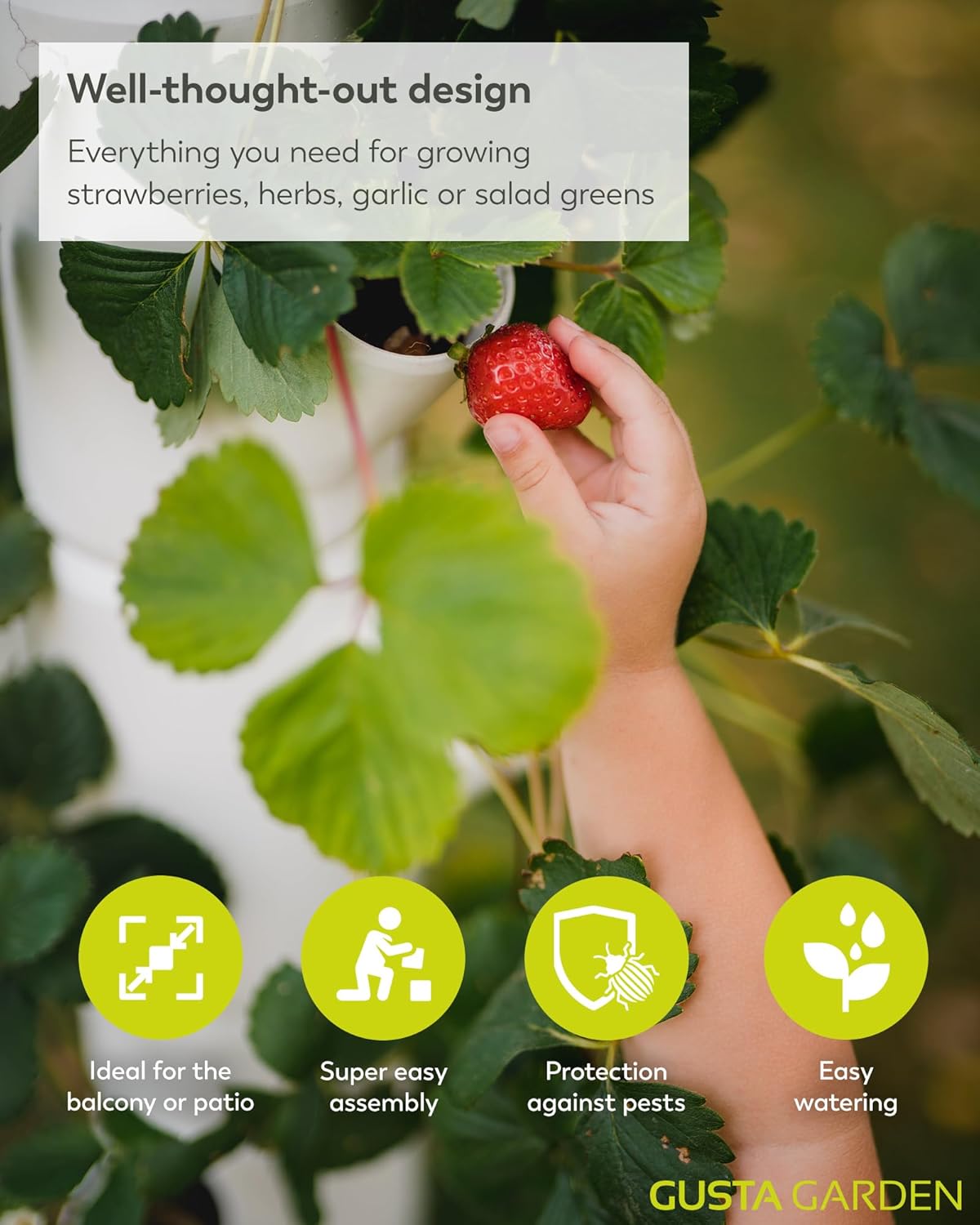 Well-thought-out design: The planter is quick to assemble and fits into even the smallest of spaces. The soil capacity is optimised for strawberry plants to ensure an ideal supply of nutrients