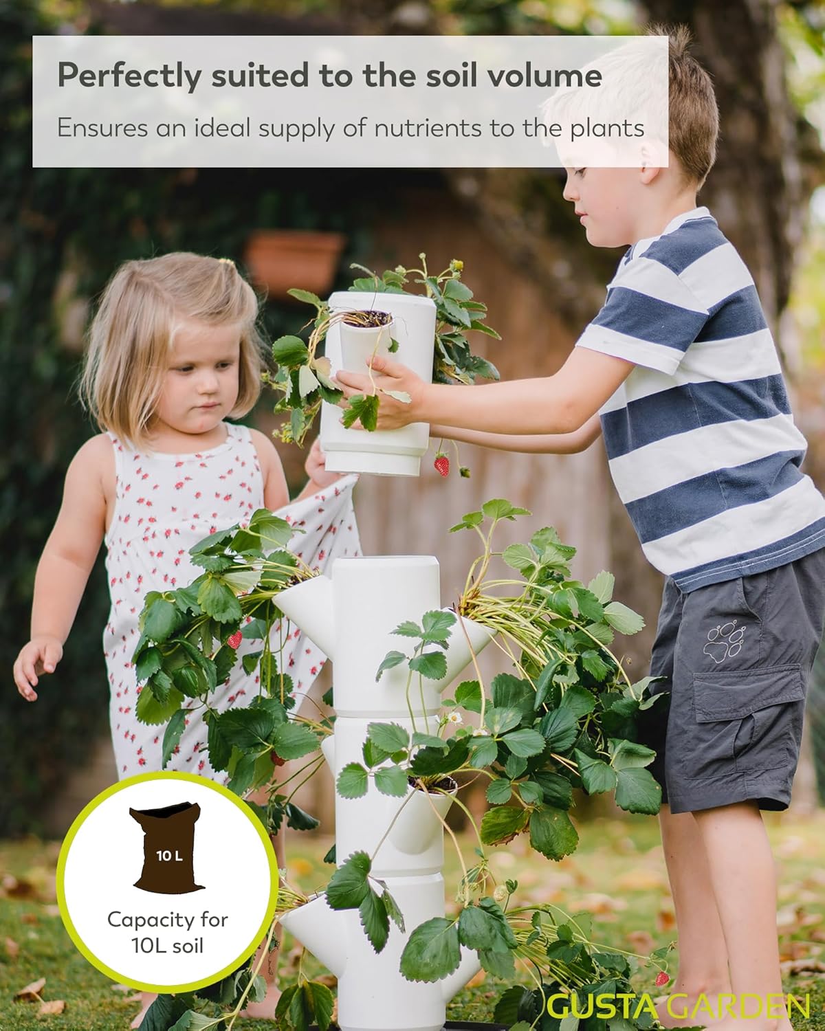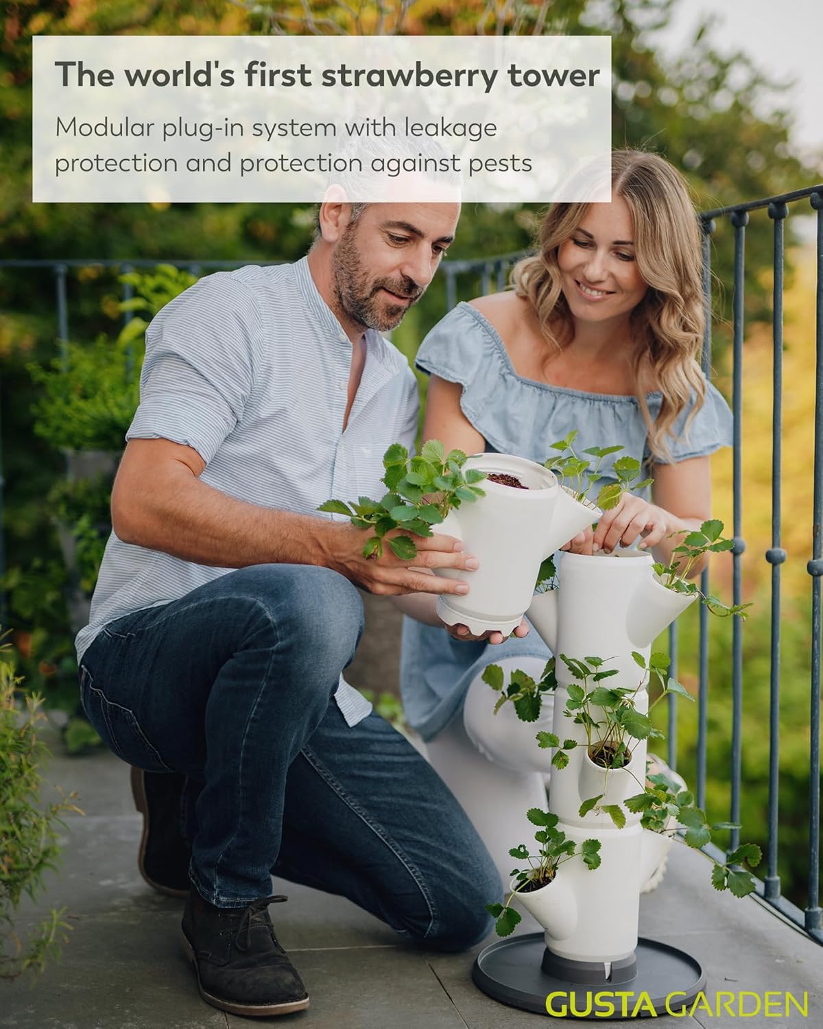 Easy watering: The strawberry tower is equipped with a built-in water control system that supplies the plants with the right amount of water & prevents spilling