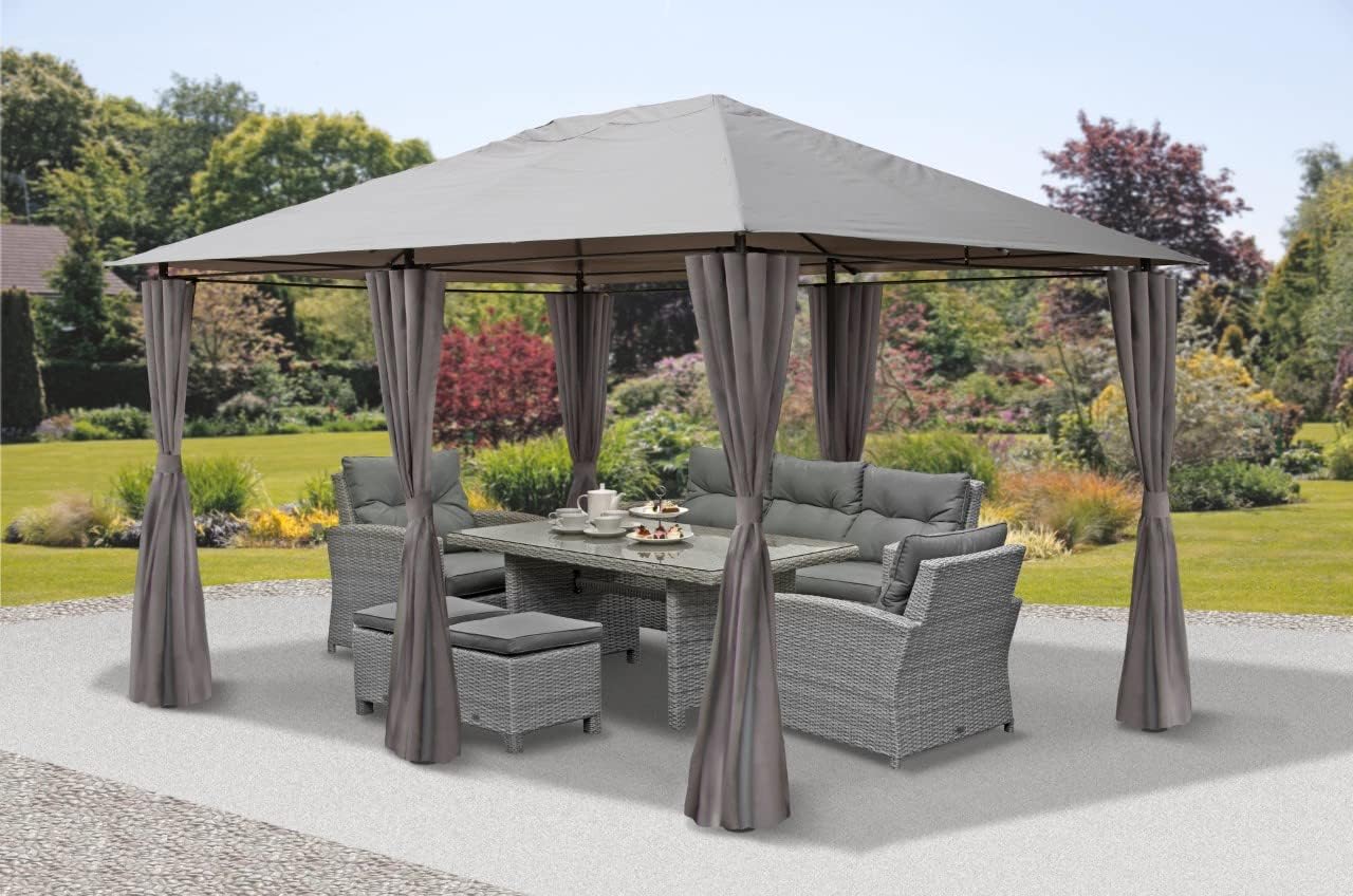 3m x 4m Large Grey Lilly Gazebo with Side Curtains