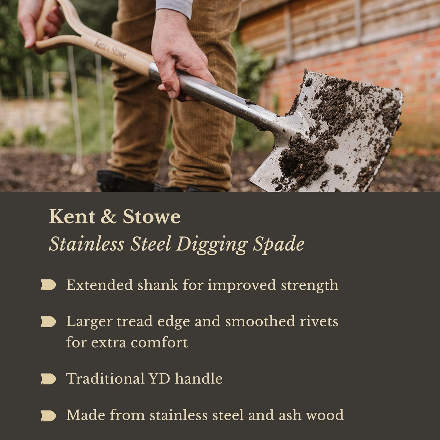 - Strength and comfort: The Kent & Stowe garden spade features an extended shank for improved strength, as well as a larger tread edge and smoothed rivets for extra comfort.