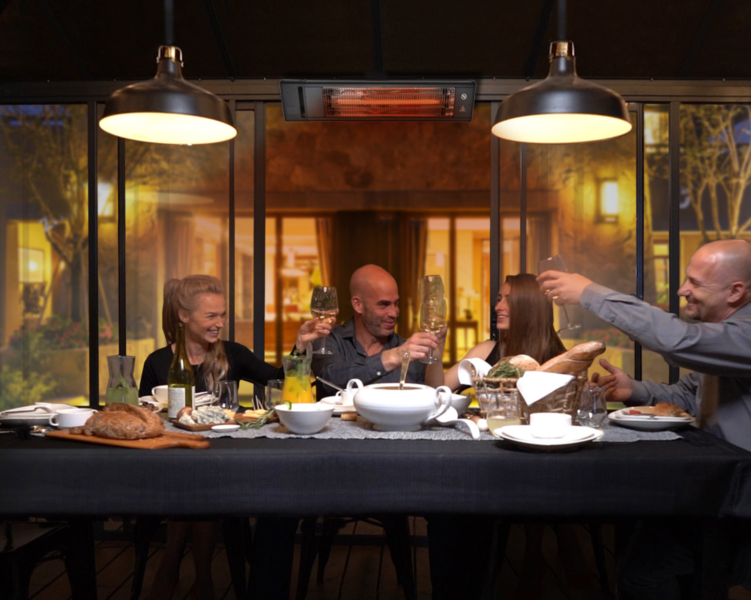 Highly resilient infrared heater providing instant warmth to living space outdoor and indoor.