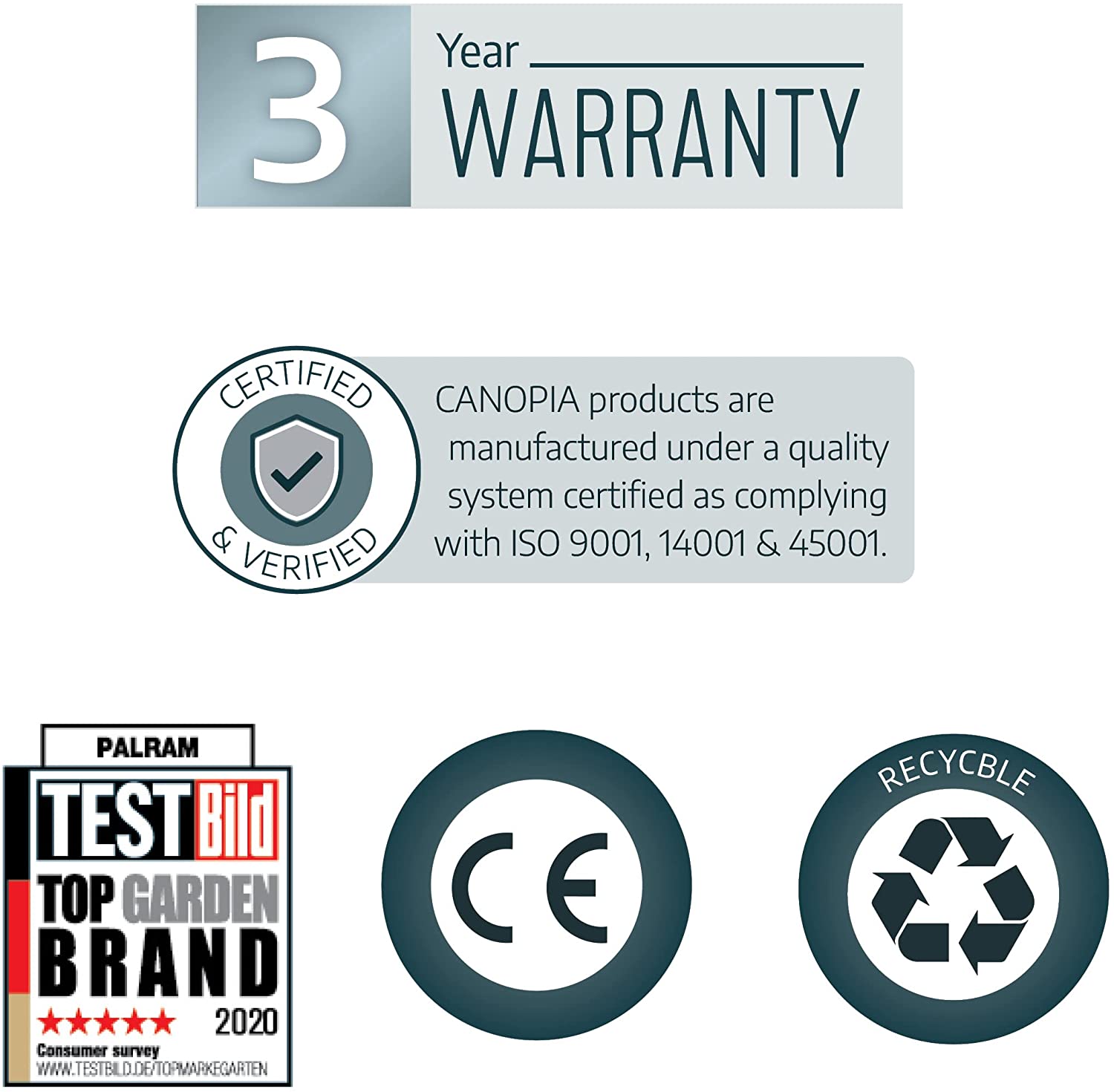 The warranty is only valid if the product has been installed, handled, cleaned and maintained in accordance with Canopia’s written specifications.