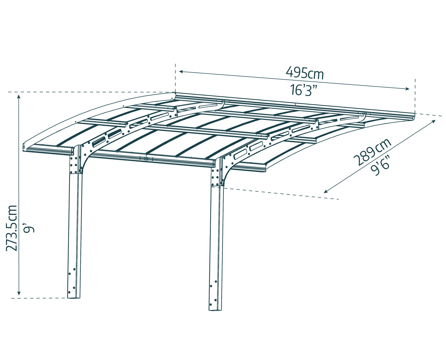 Arizona Breeze 10' x 16' Cantilever Carport- Grey & Twin-Wall Polycarbonate Roof Panels