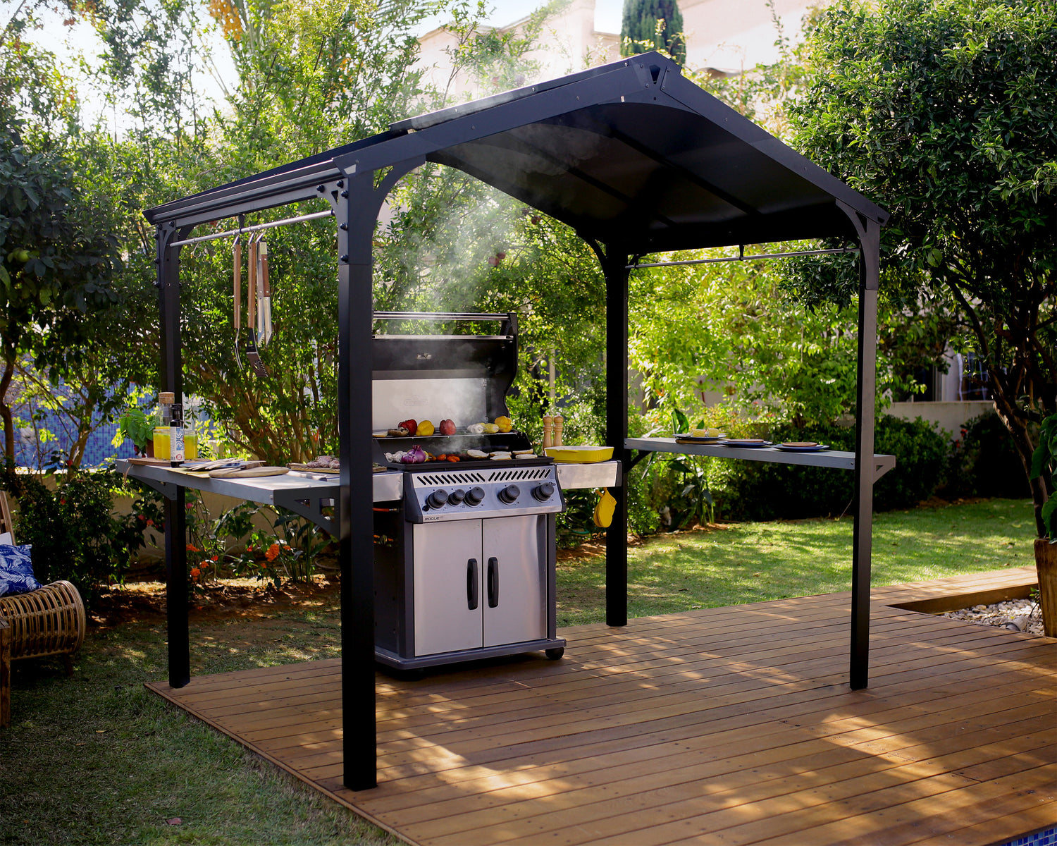 Austin 1.8m x 2.4m Outdoor BBQ Gazebo in Black Aluminium with Polycarbonate Roof