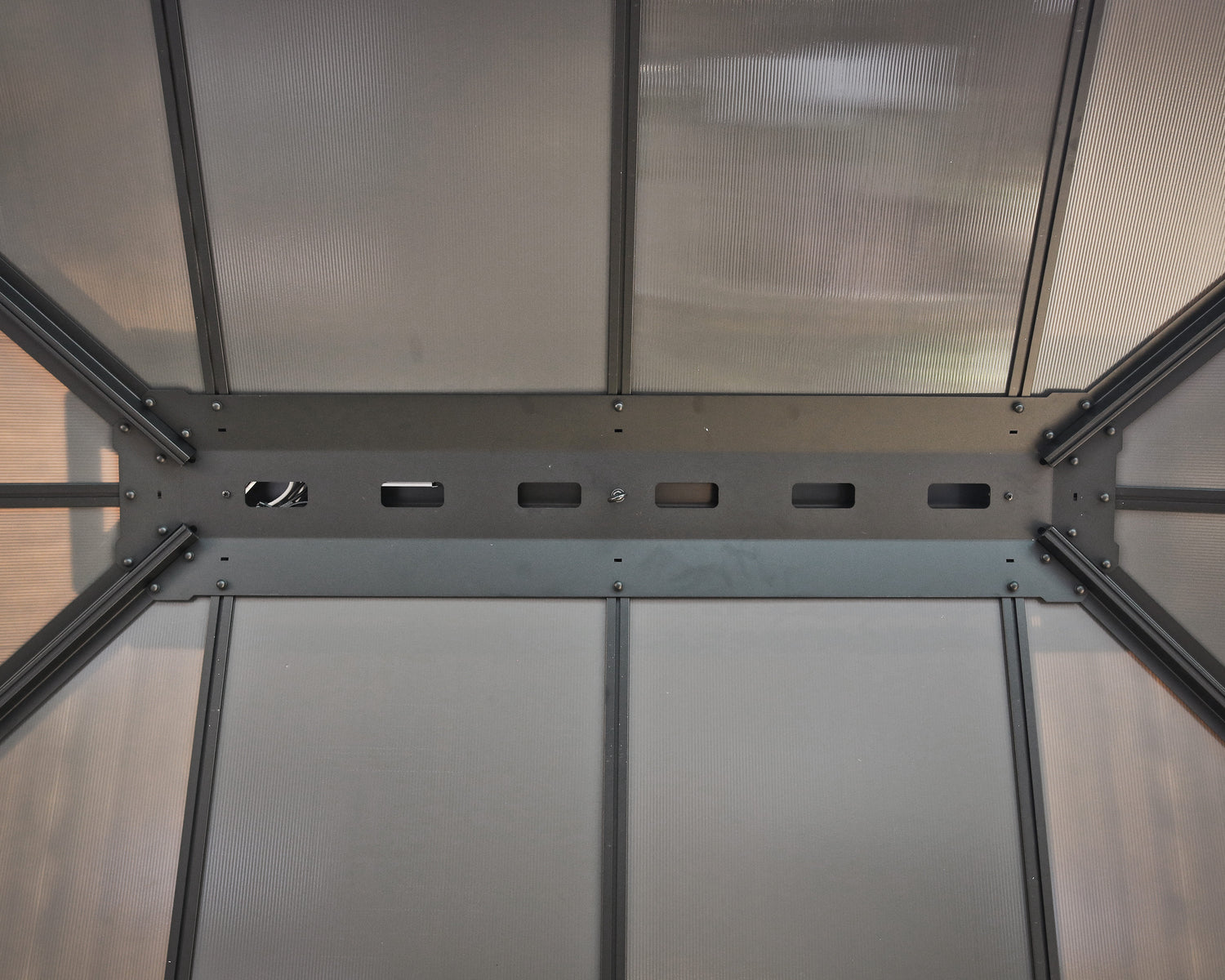 - Resilient Panels: The 6mm virtually unbreakable, 100% UV protected, grey opaque twin-wall polycarbonate panels are high impact, shatter resistant, and insulating. No need to remove panels for Winter.