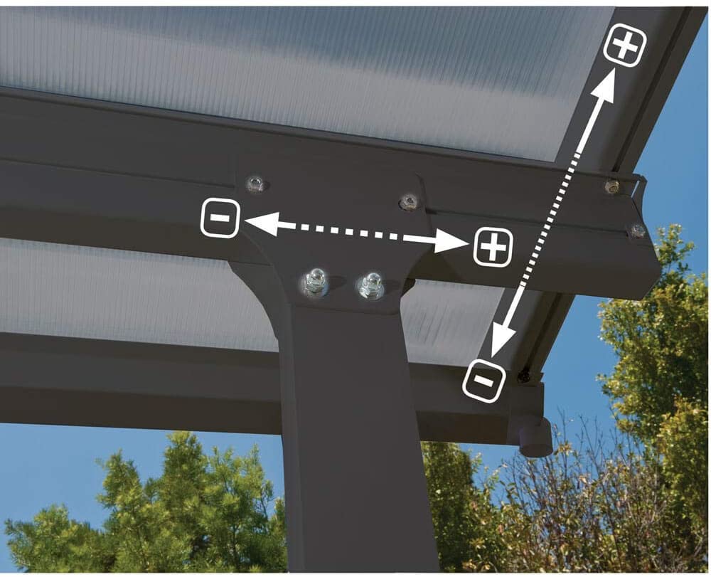Enjoy warm days, cool nights, and everything in between under the extra-wide Feria Patio Cover. The Feria Patio Cover Kit is an attractive, maintenance-free roofing solution for various outdoor uses such as a patio cover, sun lounge, and carport. Protect your valuables from unpredictable weather and harmful UV rays with this high-performance structure. It features flexible positioning poles which enable you to set your required height at the wall connection, the distance from the house and between the poles at the front. It was designed to be simply assembled by 2 people, using the Click N’ Lock roofing system for safe and simple assembly, preventing leaks. It requires no experience, no special skills, and no special tools. The Feria Patio Awning provides your family with an elegant, beautifully crafted, sturdy addition to your outside living space that is sturdy and rust-free for many years to come.