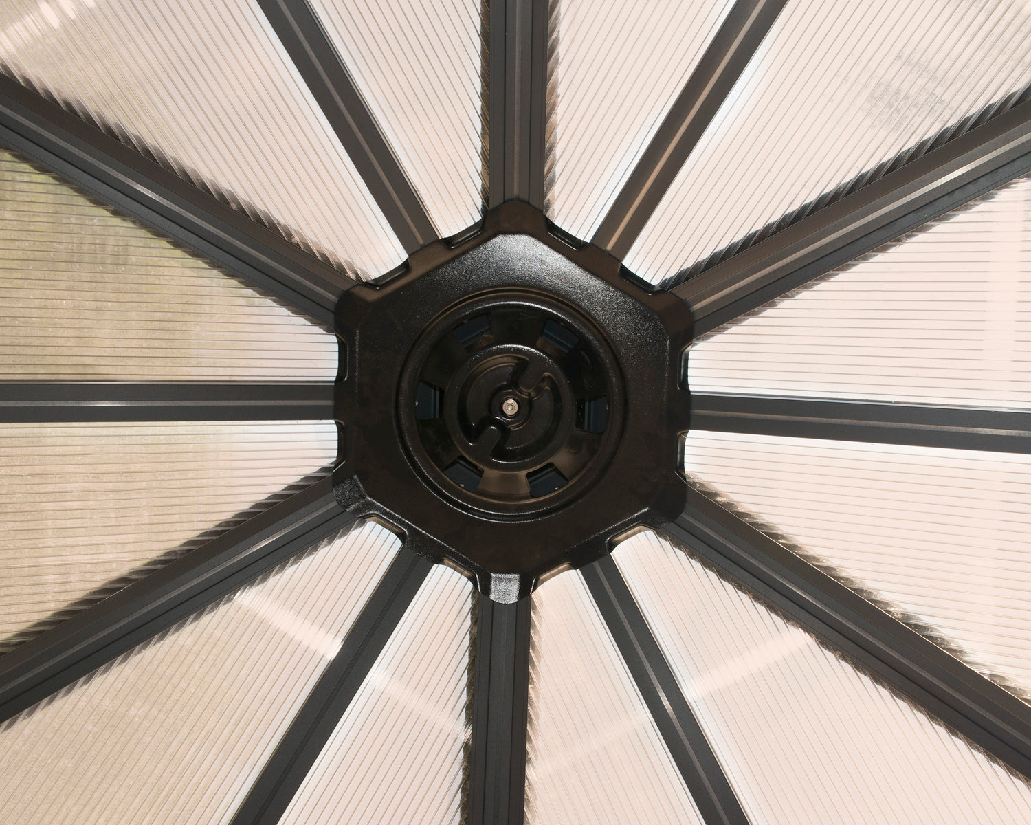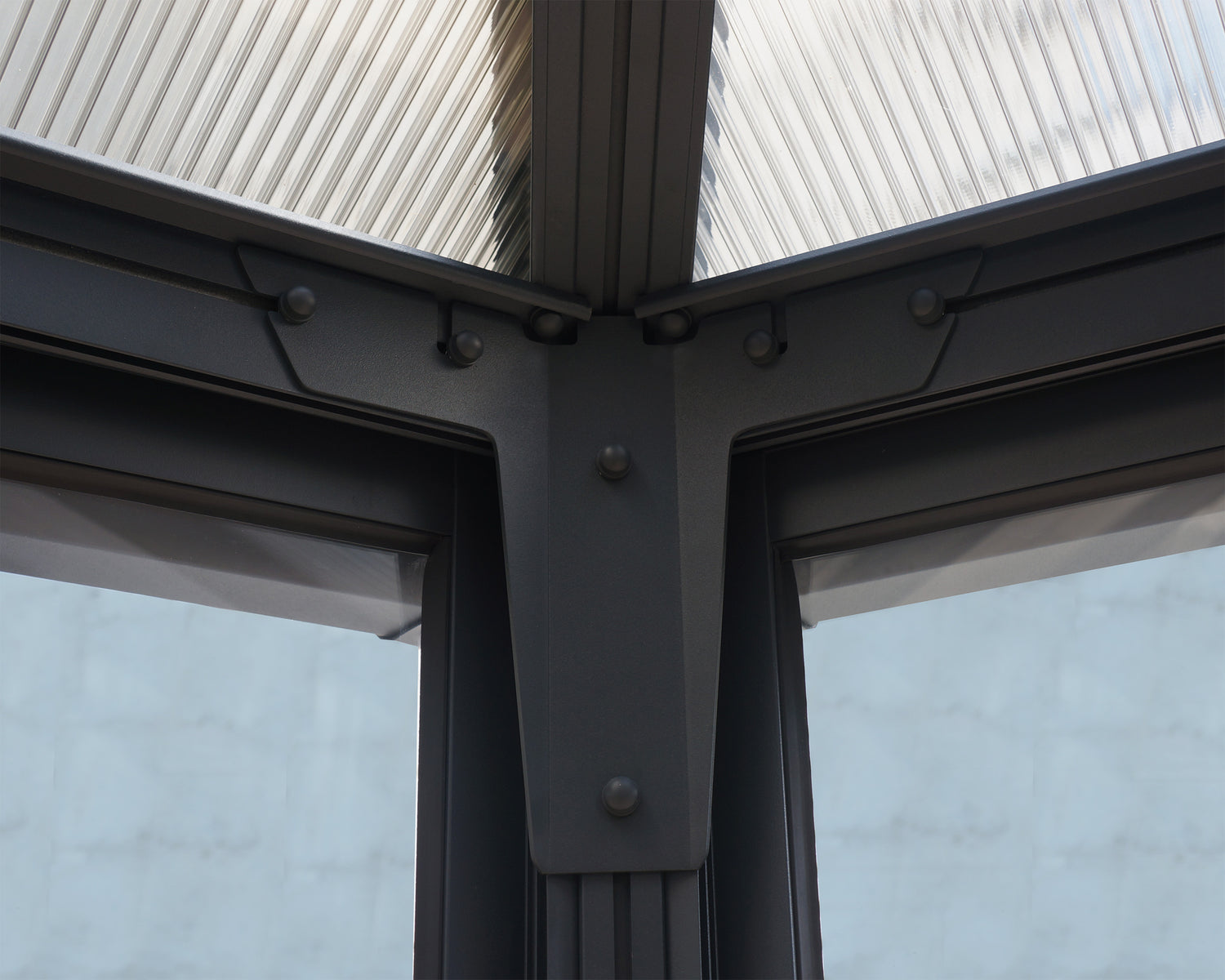 More space means more time spent outside with your favorite people (even if that means spending some quality time with yourself). The Garda is an extra-large enclosed gazebo to immerse yourself in the beauty of the outdoors from the comfort of the indoors. With a sliding door on each one of the six sides, the option to add screen door kits for every door, and effective heat retention, this garden structure is designed as a spacious outdoor room for every season, no matter the weather.