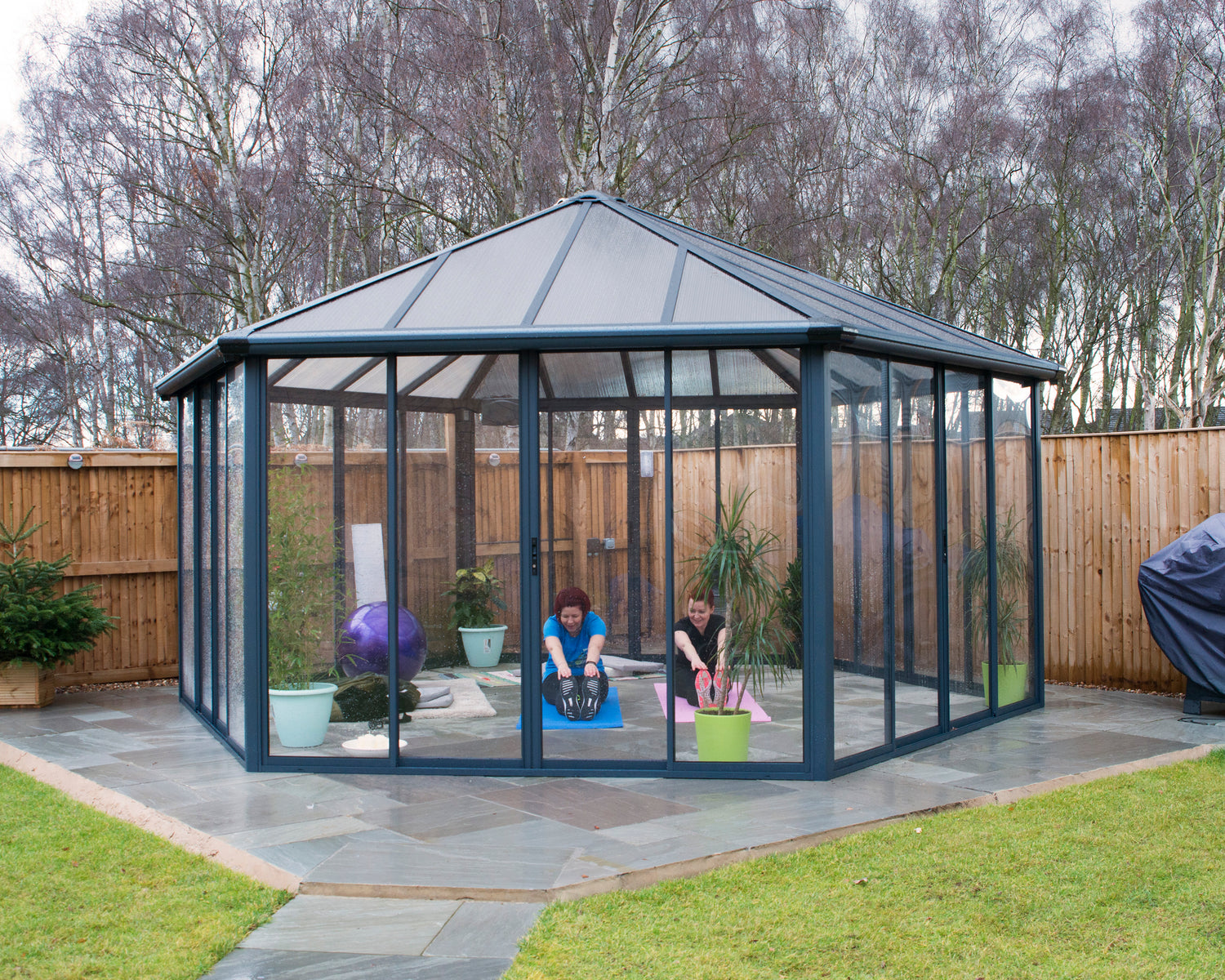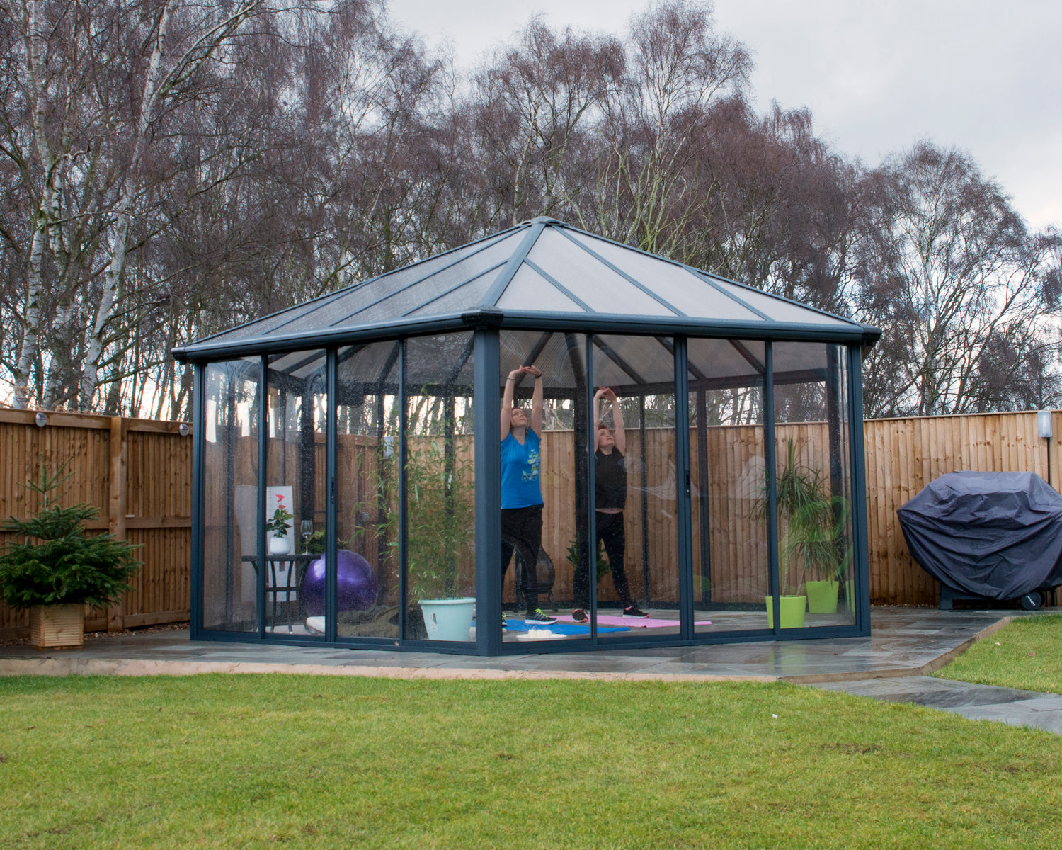 Garda 6m x 5m Hexagonal Enclosed Gazebo Kit - Grey Structure & Hybrid Panels