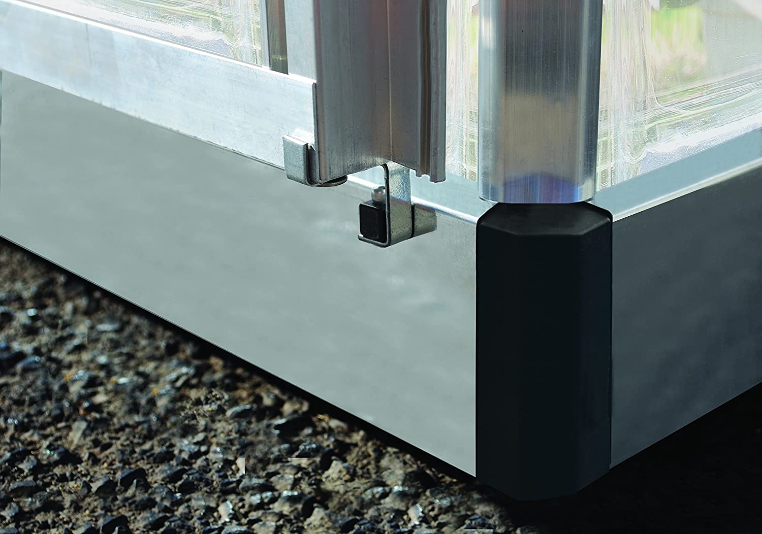 The greenhouse wall and roof panels are made of a nearly unbreakable polymer called polycarbonate that has the light transmission benefits of glass, but is lighter, stronger, and safer. The crystal-clear single panel roof and walls protect your plants from UV rays while providing all the full, direct light they need to thrive. This is especially ideal for germinating seeds and starting plants to heat up the soil and encourage germination.