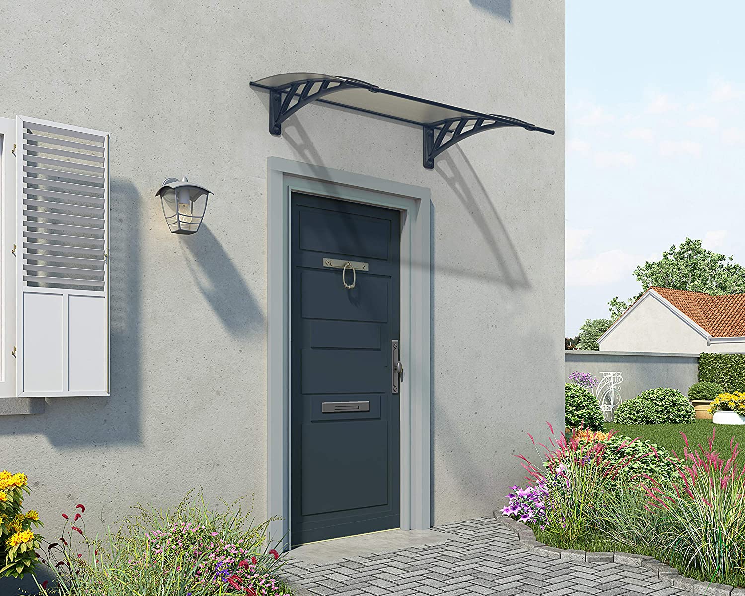 Neo 1.2m x 0.75m Door Canopy - Grey Frame & Twinwall Polycarbonate