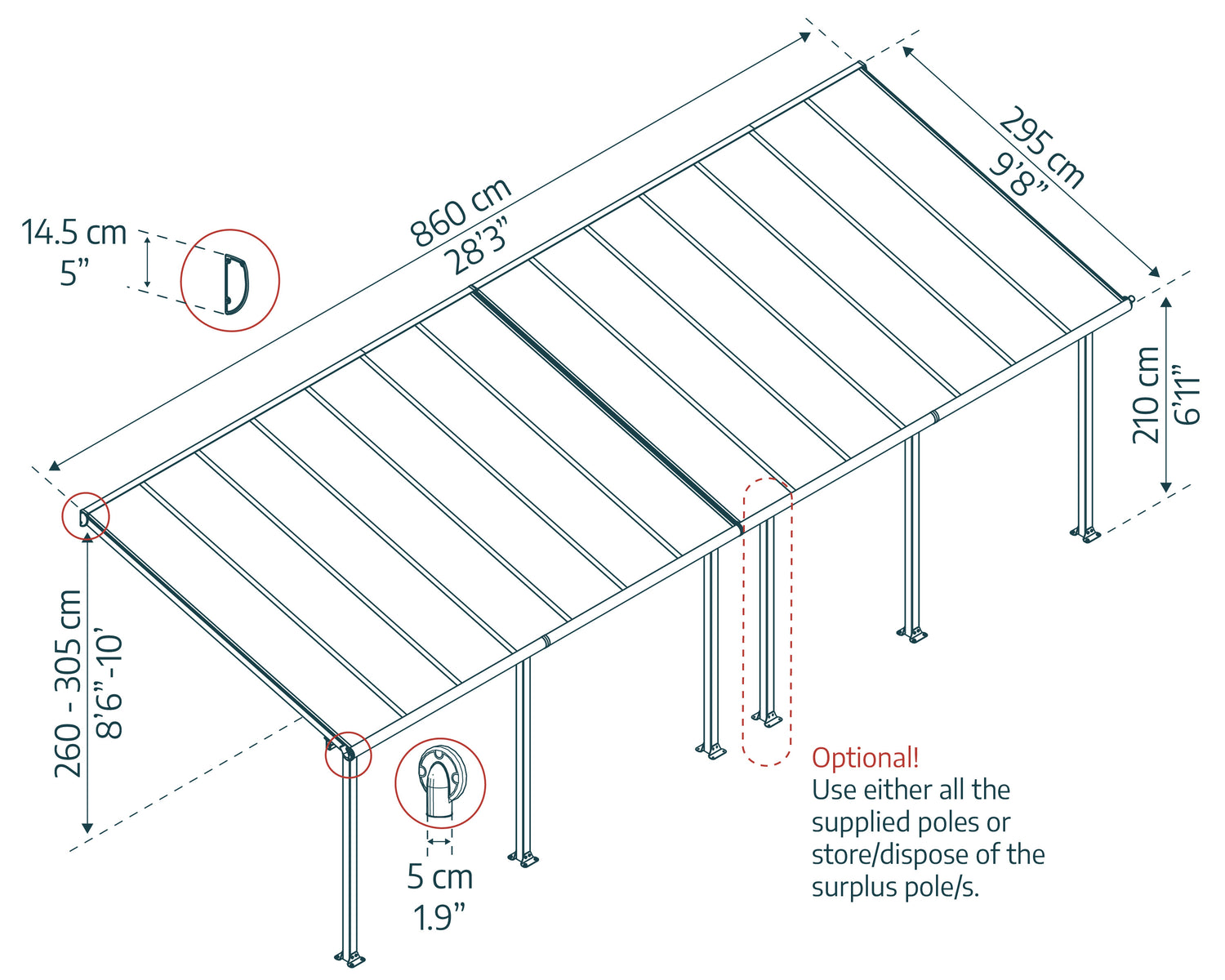Olympia Patio Cover 3m x 8.6m - Grey Frame & Clear Polycarbonate