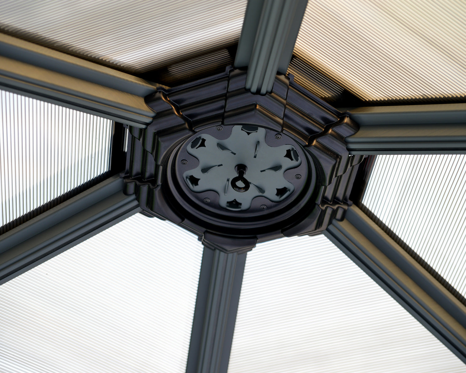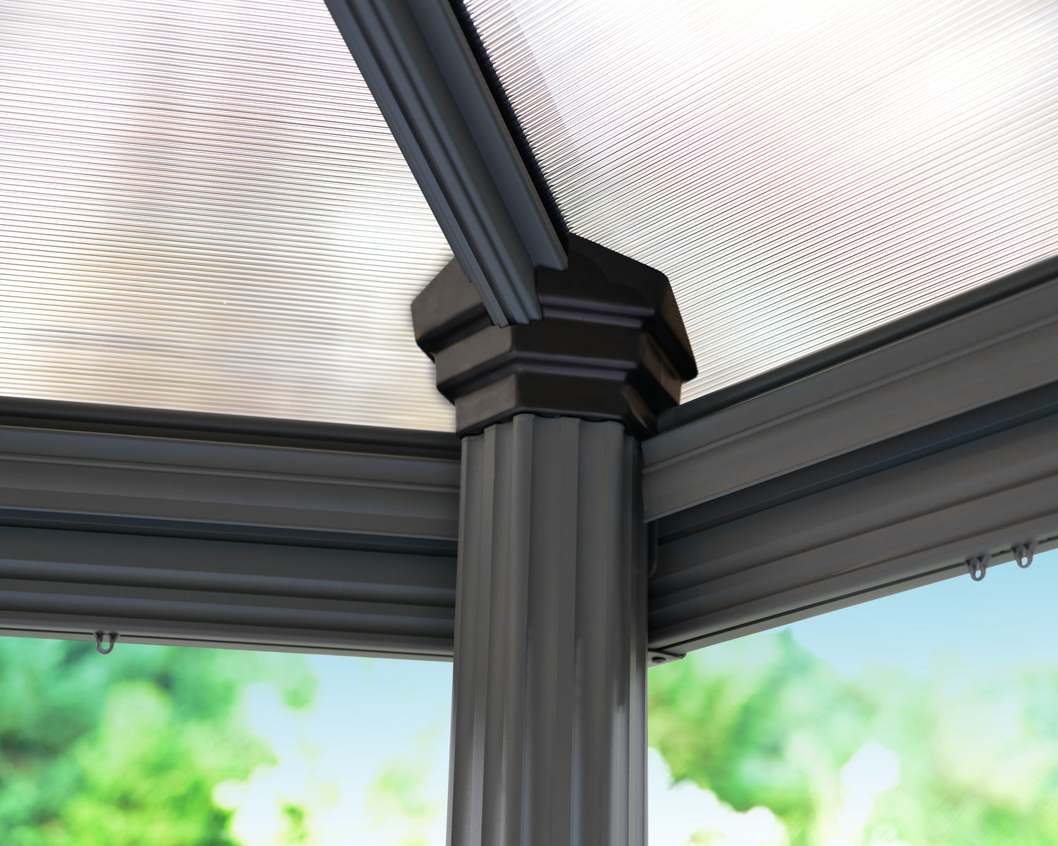 Roma 3.6m x 4m Garden Hexagonal Gazebo in Grey with Polycarbonate Roof