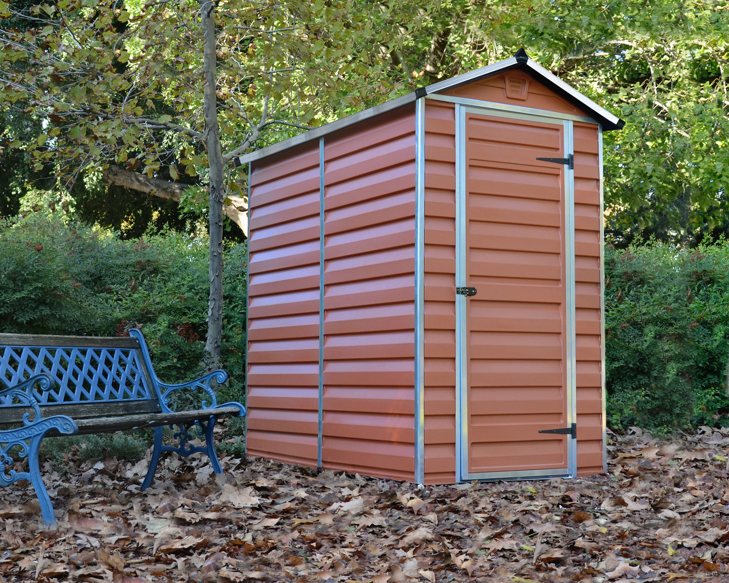 The Skylight garden storage shed is made with a reinforced aluminum frame and flexible polycarbonate panels specially engineered to withstand the expansion and shrinkage associated with weather changes. The panels do not bend, fracture, or discolor over time, giving your things maintenance-free protection for years to come. The unique Skylight roof panels transmit natural sunlight during the day while giving you opaque external visibility for maximum privacy. Designed with your outdoor living needs in mind, the Skylight plastic shed will complement your home, enhance your outdoor living space, and organize and protect your things.