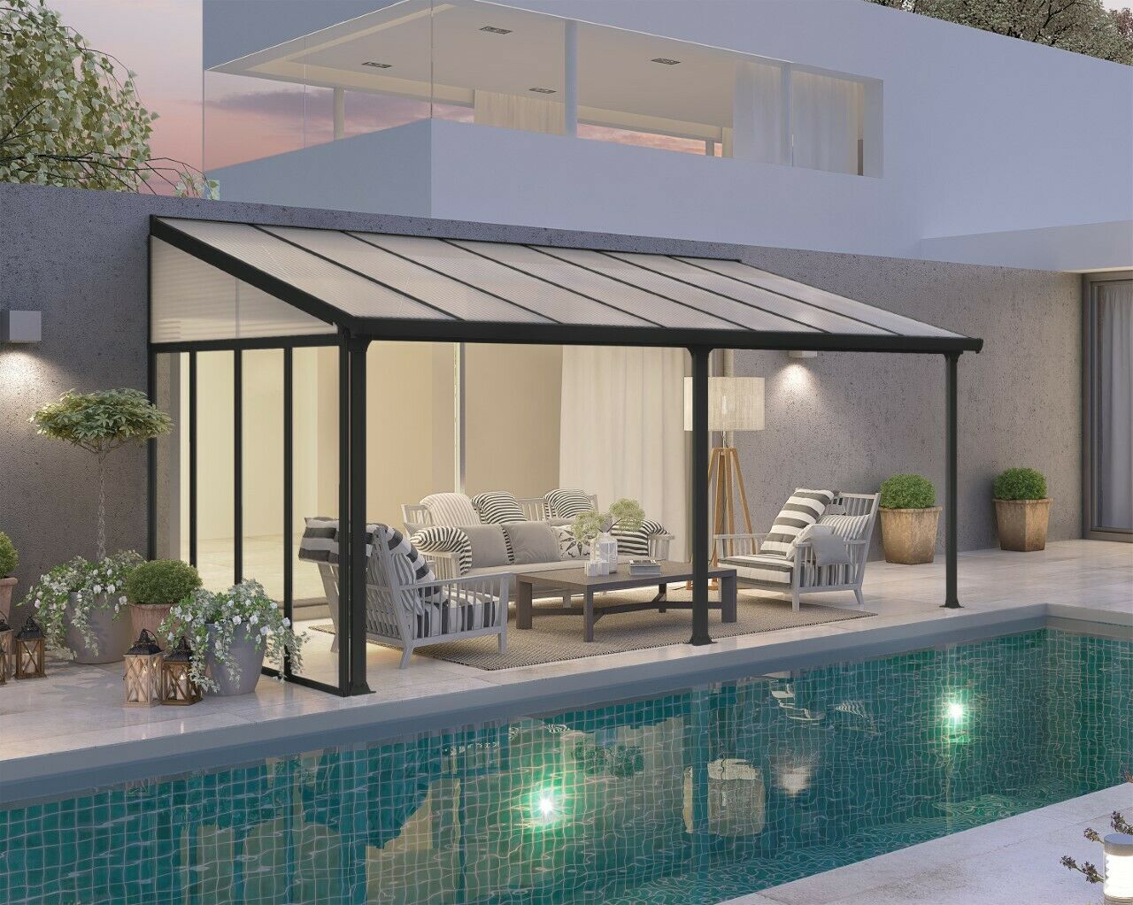 Enjoy your outdoors year-round with the Tuscany Patio Cover, a stylishly crafted and sturdy addition to your living space. Enjoy gatherings of family and friends without fearing unstable weather spoiling your plans. The Tuscany is an aesthetic, multi-purpose, maintenance free roofing solution allowing for various outdoor uses such as a pergola, carport, sun lounge etc. It is designed to be assembled by 2 people, requires no experience and special skills or tools. The Tuscany provides your family with an elegant, sturdy and rust-free retreat for years to come.