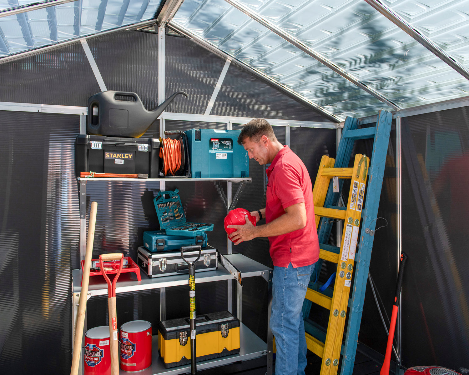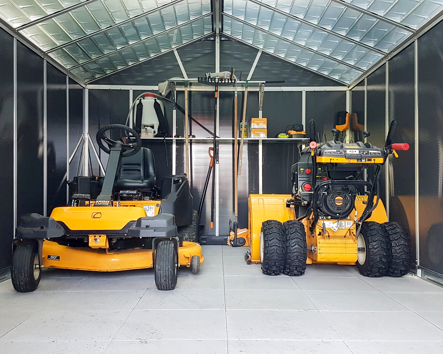 - Ultra-resilient, sunlight polycarbonate storage shed, designed for multi-functionality and years of superior protection.