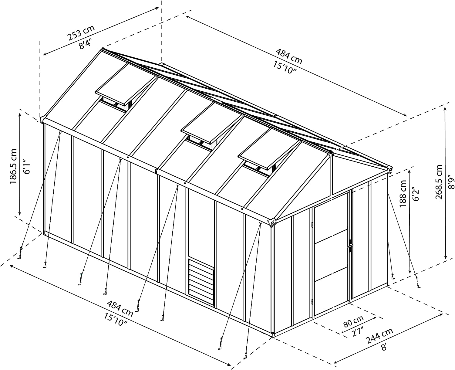 Glory 8' x 16' Greenhouse - Grey Frame & Multiwall Polycarbonate Panels