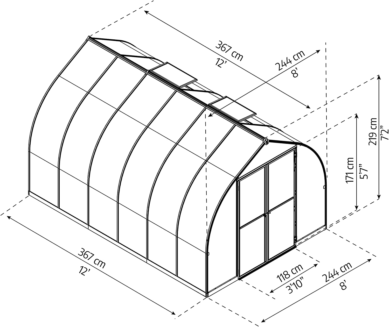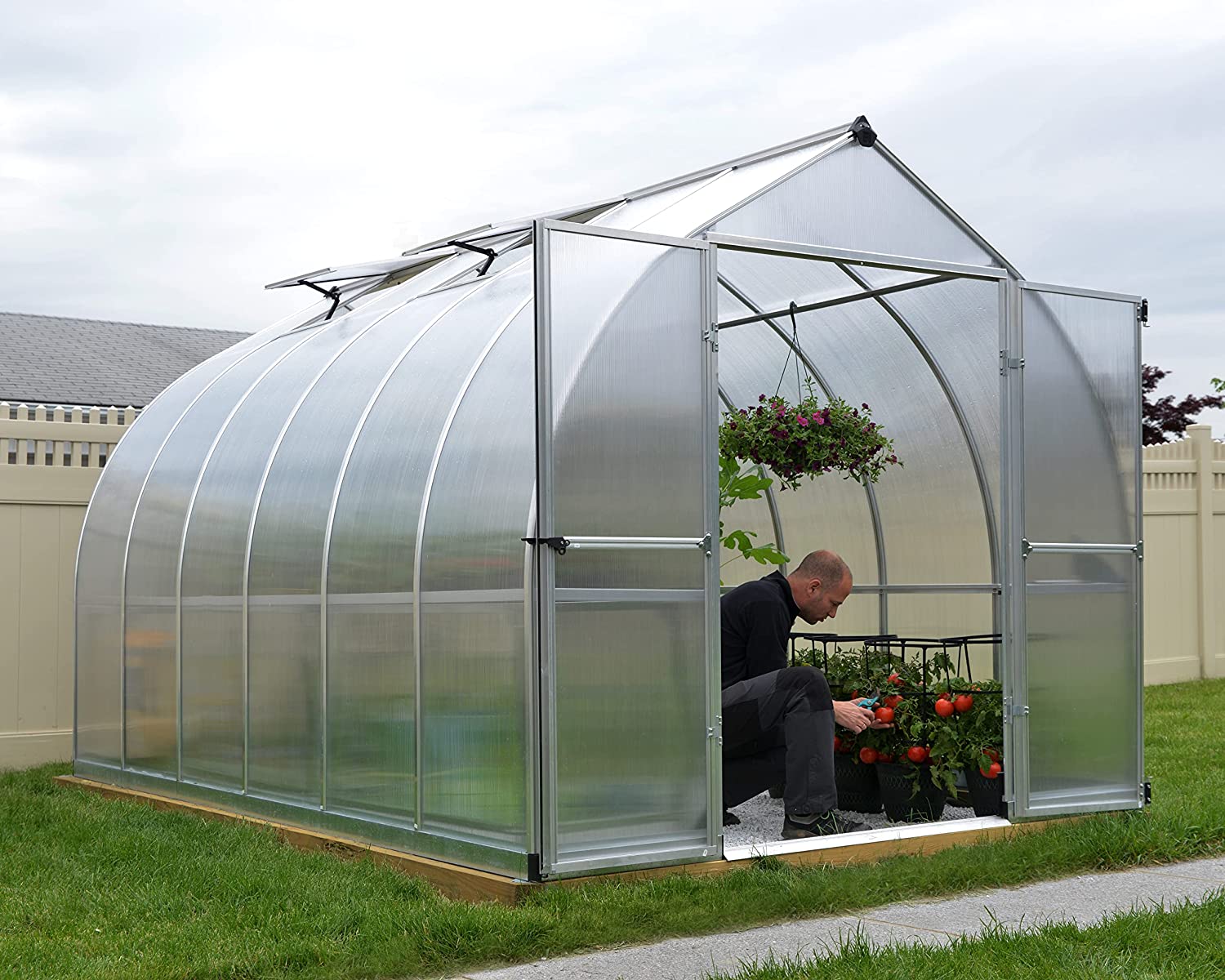 Bella 8' x 12' Greenhouse - Silver Frame & Twinwall Polycarbonate Panels