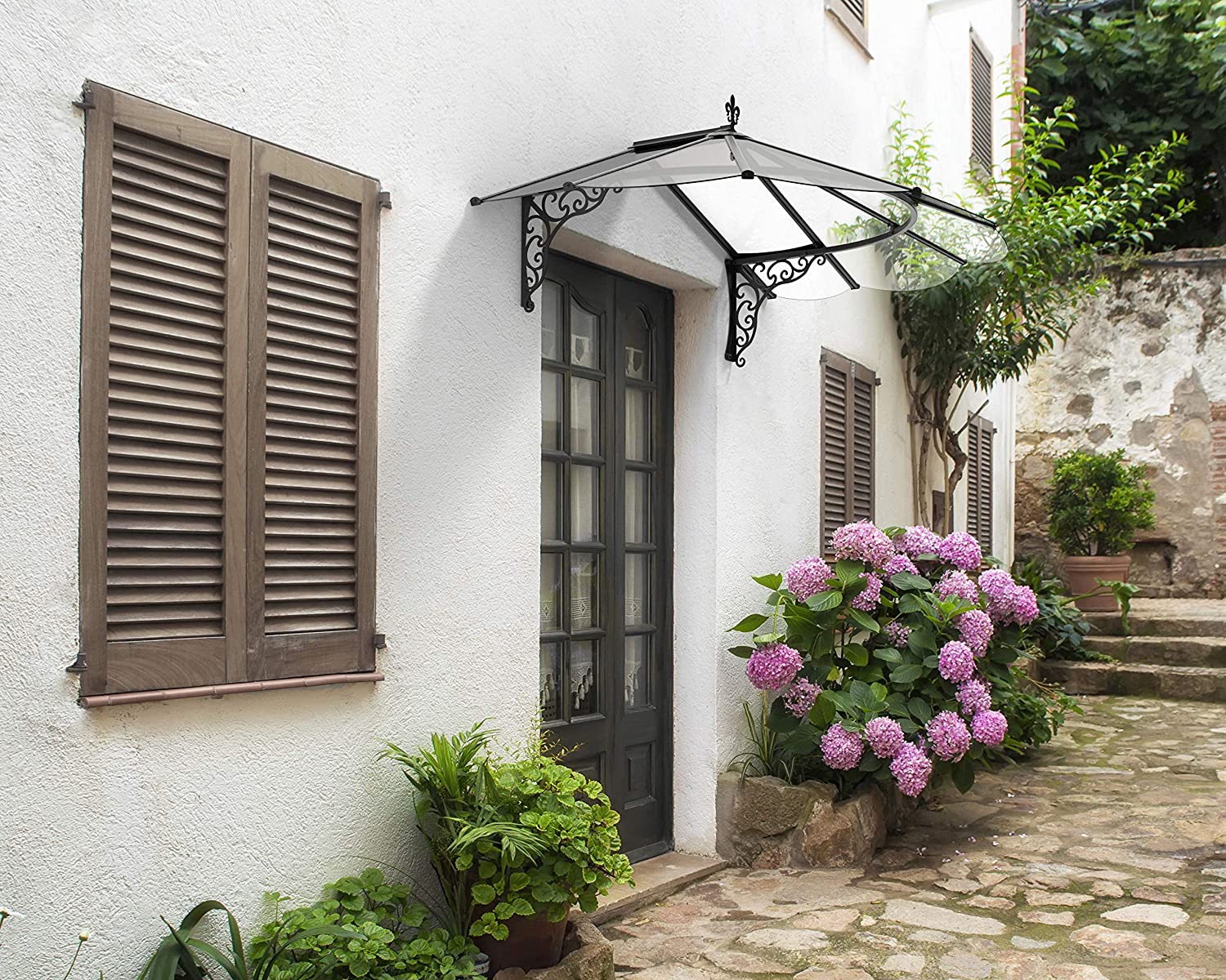 We love how a good door awning can be the perfect way to make a statement. With the beautiful Iris Door Awning, you create a striking entrance to your home that is as practical as it is attractive. A gorgeous black aluminum frame curves around clear panels and is supported by decorative galvanized steel brackets that echo the look of French antiques. The Retro Door Cover fans out to protect you, your door, your entryway, and everything underneath it. This ultra-resilient Porch Awning is easy to install and engineered to withstand harsh weather conditions so that you, your things, and your door are protected for years to come. With the Iris Door Awning, you get protected in style.