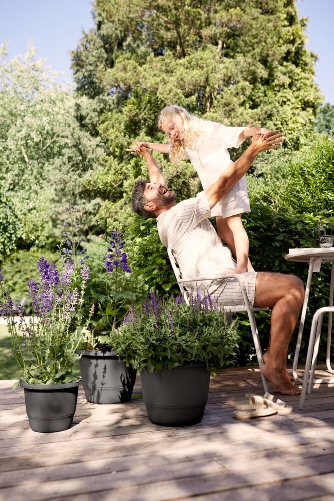 The elho amiga is more than happy to accompany you on your terrace, balcony, or garden. This outdoor pot features a unique and accessible design with a natural look. And, of course, it comes with that long-lasting quality you've come to expect from us. You can never have enough of these green friends. That's why the amiga comes in five sizes, so you can brighten up every single surface.
