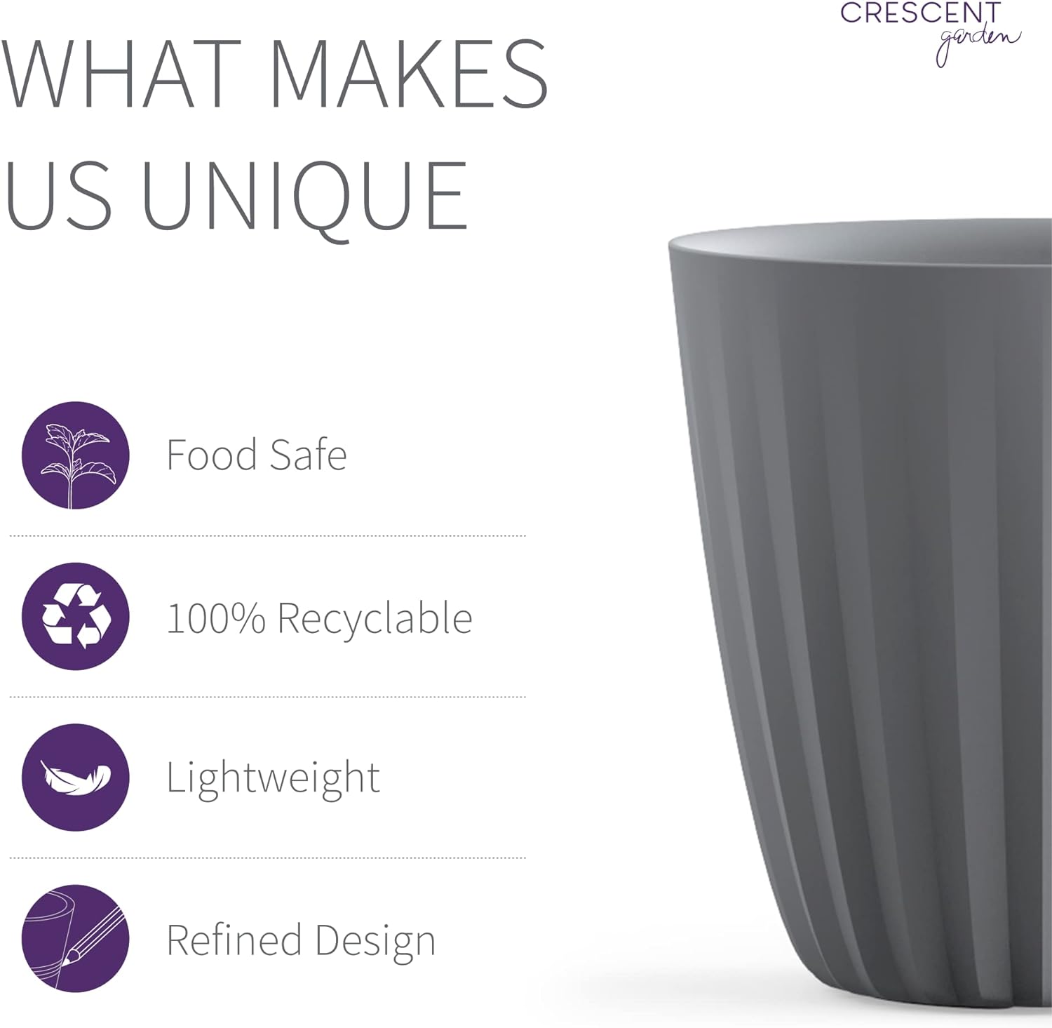 RECYCLABLE: Crescent Garden's eco-friendly planters are made from 100% recyclable high-grade polyethylene. Being lightweight makes them easy to place anywhere indoors or outdoors but also means we use less packaging and energy for transportation.