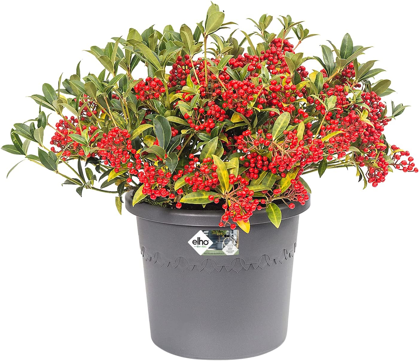 Put your prettiest plants centre stage with this timeless classic, the Algarve collection from elho. Create your own Mediterranean atmosphere in your garden or on your balcony with these large outdoor planters. They come in a range of attractive matte colours and feature a decorative flower motif. Move your plants easily to the best spot on your patio and rearrange them whenever you like, thanks to the handy wheels on this large, round flower pot. A specially designed base raises the pot off the ground to provide optimal drainage and aeration to help your plants thrive so you can enjoy them for longer. This plastic flower pot is also made from top-quality materials, so you can use it season after season. You can be sure that this flower pot has been made with love for nature, it is made from 100% recycled materials, is 100% recyclable and is produced with wind energy.